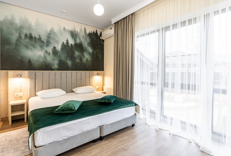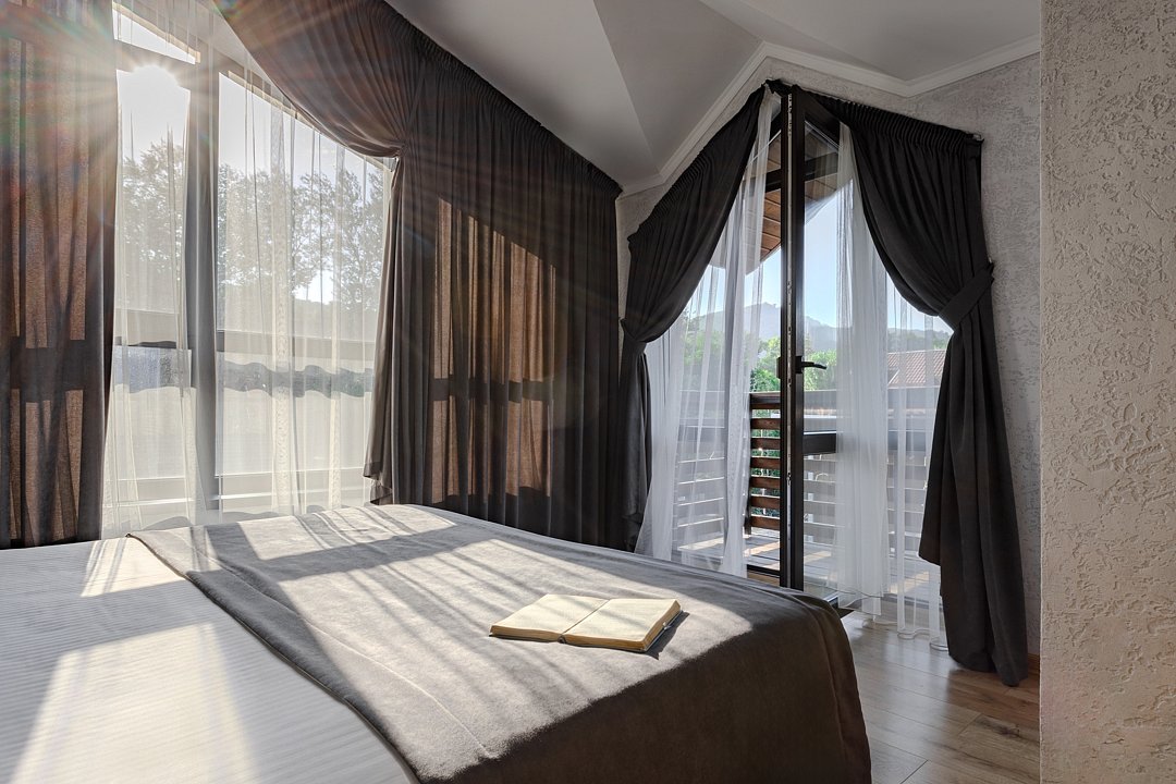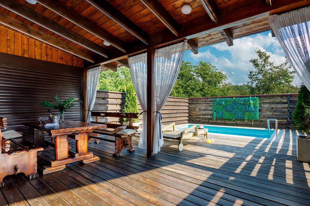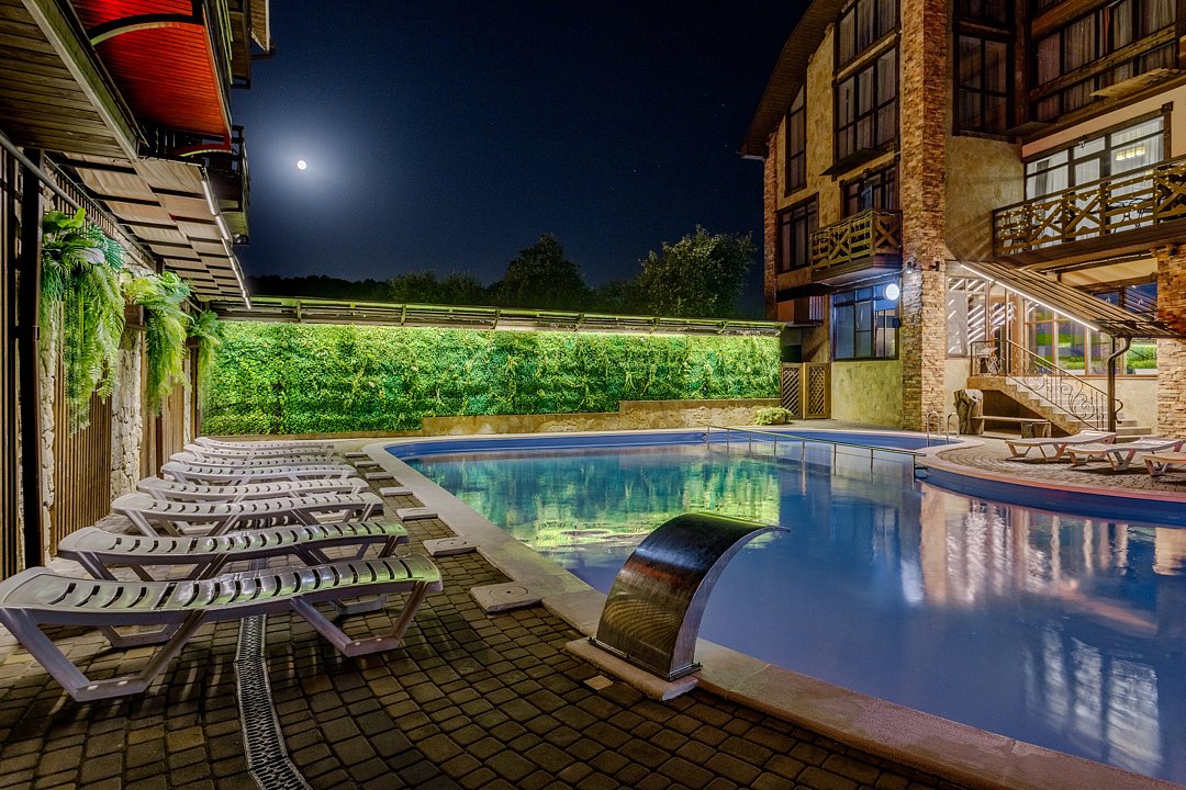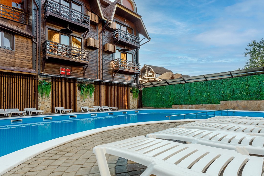 Бассейн с поддержанием идеальной температуры воды позволит вам окунуться в удовольствие от плавания в любое время года. Наслаждайтесь живописным видом на горы Адыгеи и окружающую природу, расслабляясь на шезлонгах рядом с бассейном.