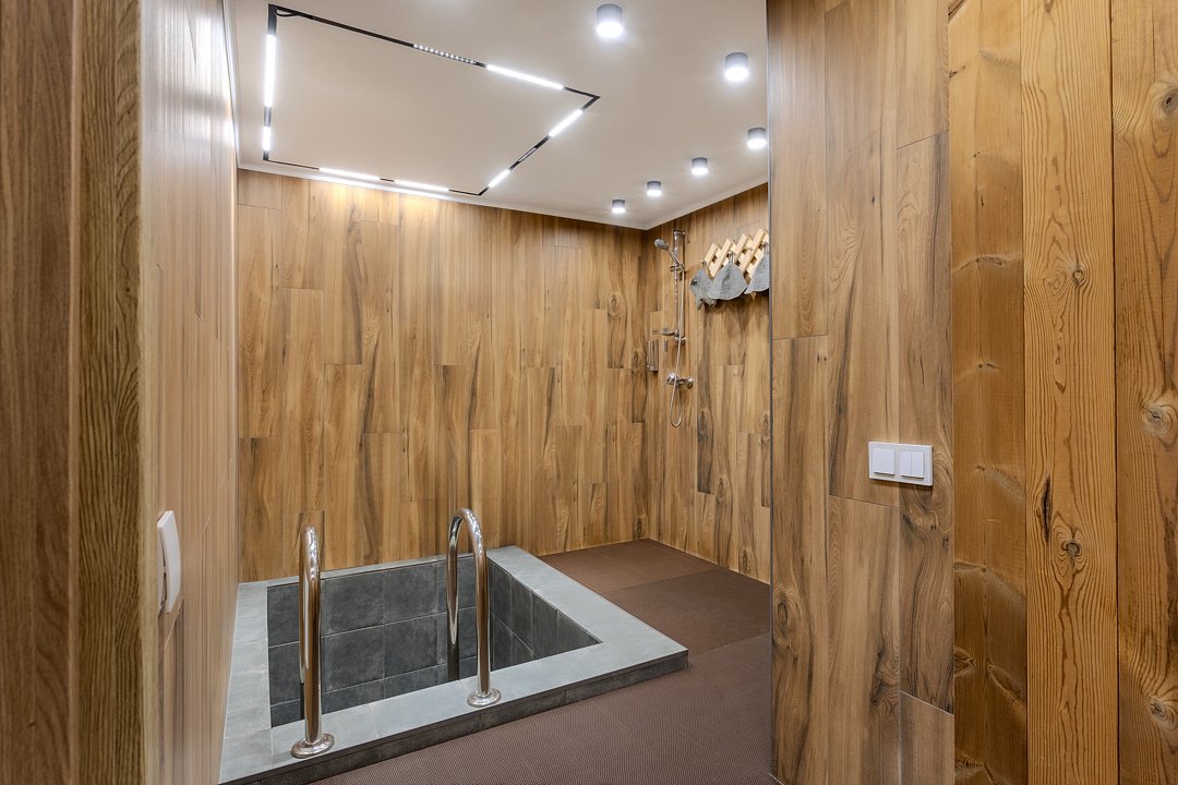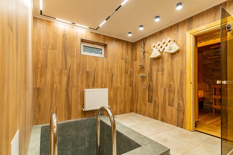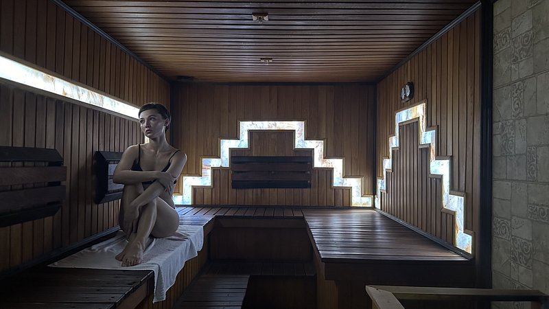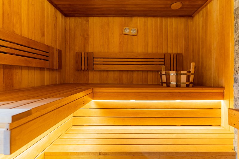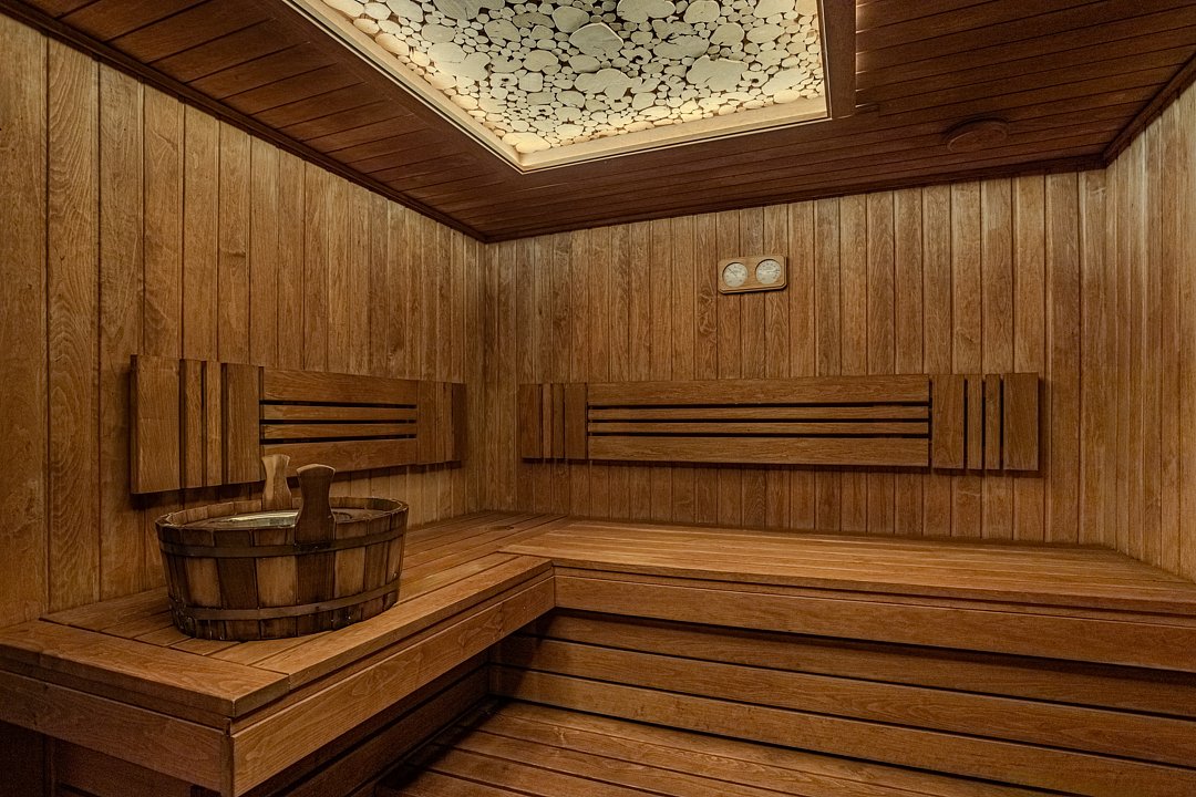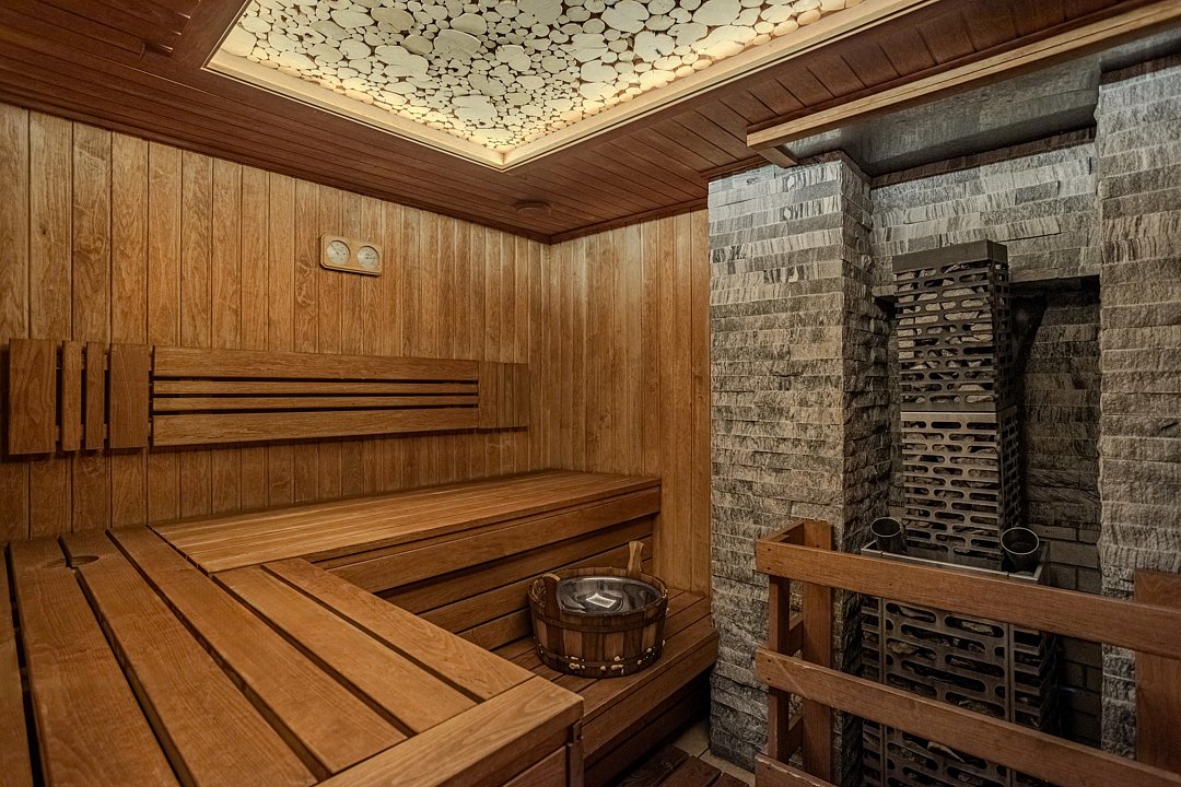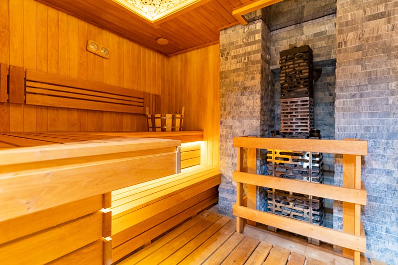 Здесь есть небольшая сауна с бассейном и комнатой отдыха рассчитанной на 15-20 человек.