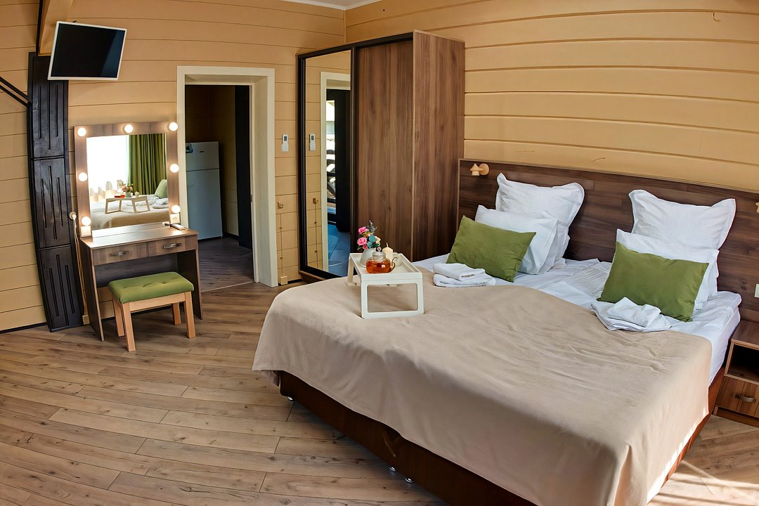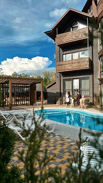 Путешествие с семьейПотрясающее место для семейного отдыхаАтмосферное место. Понравилось все: чистые номера, в них все есть , даже халаты с зубной пастой и щеткой. Вкусные завтраки. Красивая территория . Чистый теплый бассейн. Приветливый и внимательный персонал. Все постройки деревянные. Рекомендую к посещению однозначно . Лучшее из лучших место ❤️