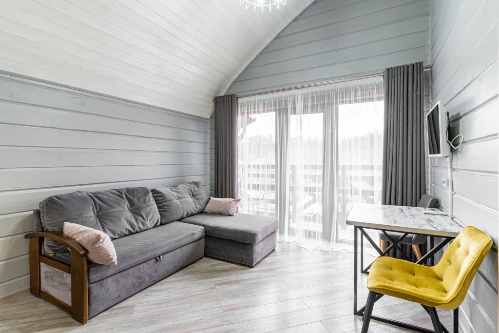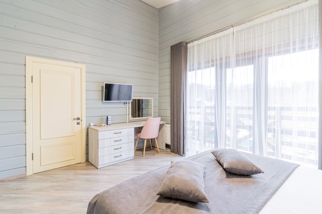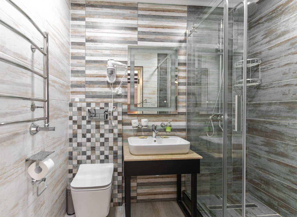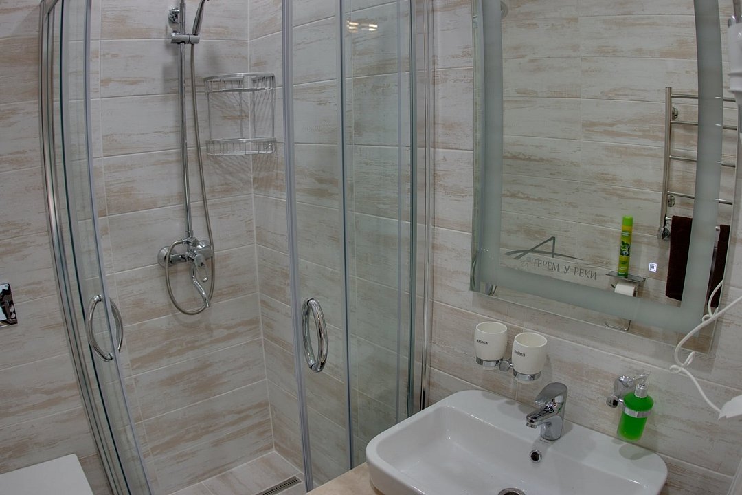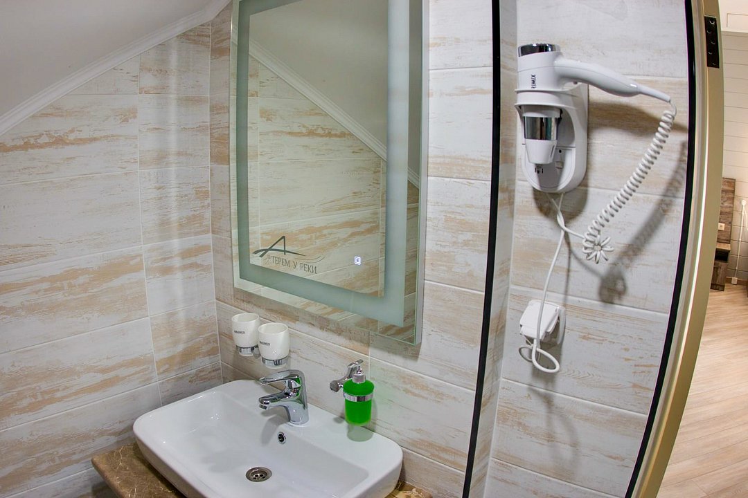В гостинице «Терем у реки» гостям предлагается размещение в номерах, оформленных в загородном стиле и обставленных деревянной мебелью. Все номера оборудованы письменным столом и ванными комнатами с душем.