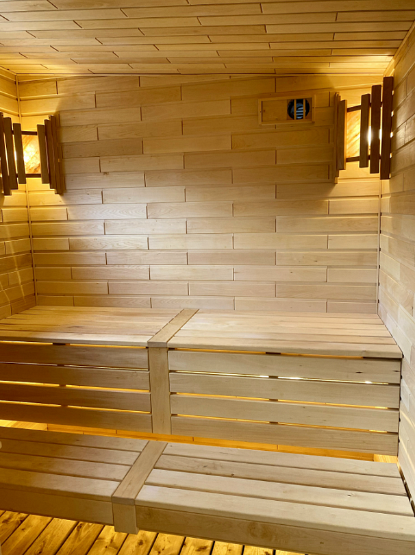 В доме: 2 отдельные спальни по 14 кв. м., одна кровать 180 см и 2 кровати по 90 см; раскладной диван размером 180 см. Просторная гостиная 27 кв. м. и кухня с обеденным столом на 7 человек. Два санузла.