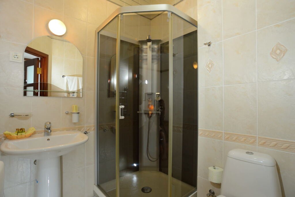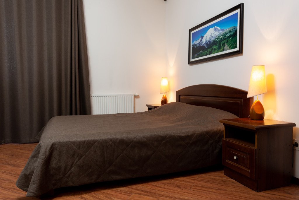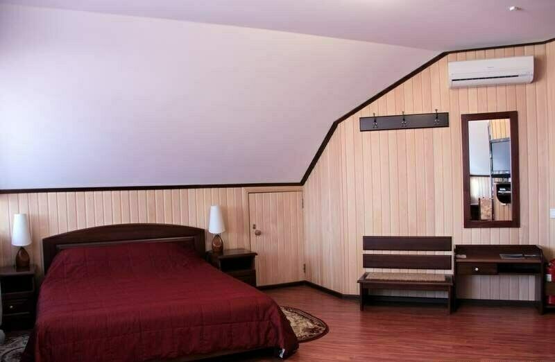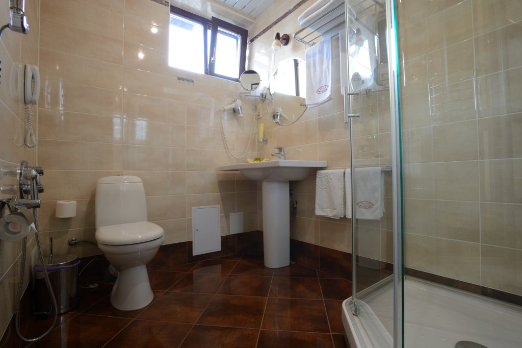 Интерьер номера продуман до мельчайших деталей. Номер с большим индивидуальным балконом. 2-х местный номер оснащен LCD-телевизором и DVD, спутниковой антенной, холодильником с прохладительными напитками, кондиционером. В ванных комнатах сантехника и душевые кабины европейского качества, фен, косметические средства для личной гигиены, махровые халаты и тапочки. В стоимость номера входит: завтрак; чай, кофе; доставка в номер корреспонденции по ее получении; побудка к определенному времени; предоставление кипятка, иголок, ниток; наличие в номере телевизора, телефона, холодильника с напитками; парковка автомобиля; ежедневная уборка номера с заправкой кровати и сменой полотенец; пользование индивидуальным сейфом; вызов такси; WiFi интернет, спутниковое телевидение; справочная информация по экскурсионным объектам.В номере