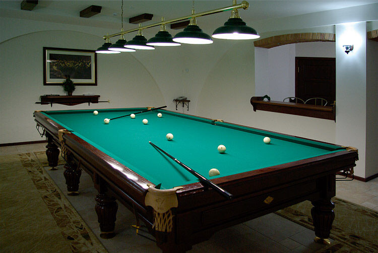 Какая же усадьба без настоящего русского бильярда. Атмосферный зал, отличный стол, зона отдыха. Осталось только собрать душевную компанию