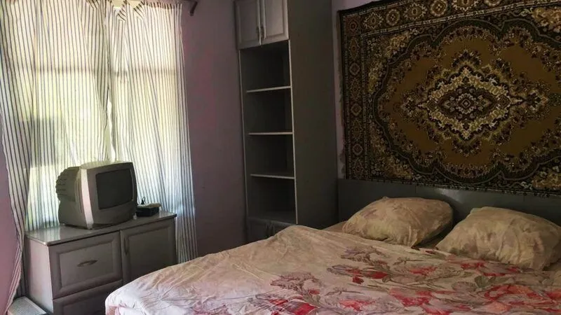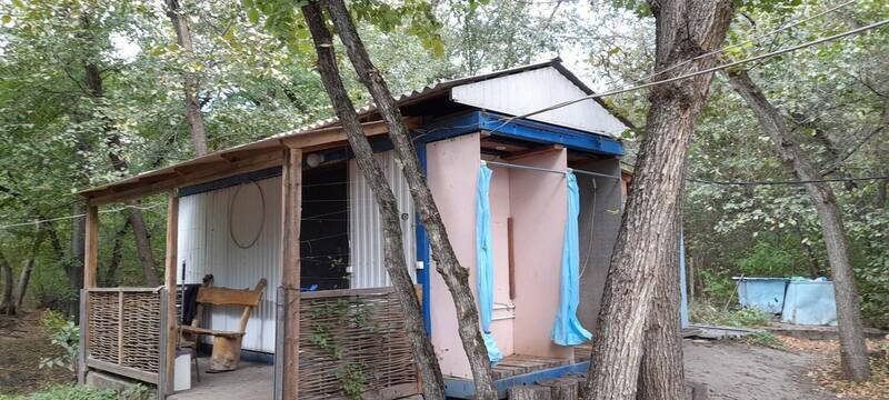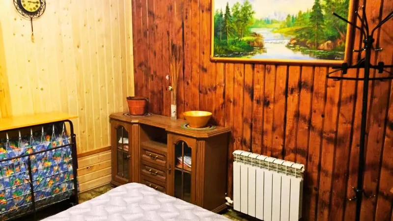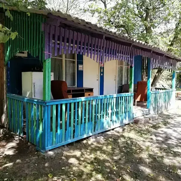 Деревянный домик с двумя номерами, по 3 спальных места в каждом номере. Душ (теплая вода), туалет, умывальники, летняя кухня находятся рядом с домиком.