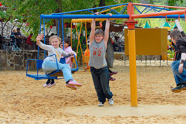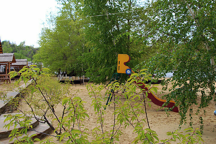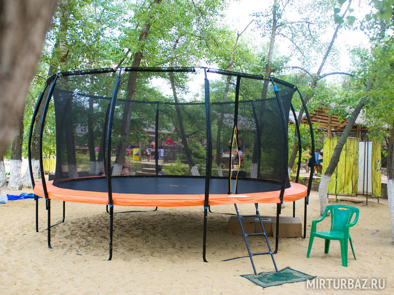 Место предлагает корпоративный и семейный отдых. Специально для самых юных постояльцев оборудована детская игровая площадка и качелями и каруселями, открыт батут с надежными защитными боковыми сетками.