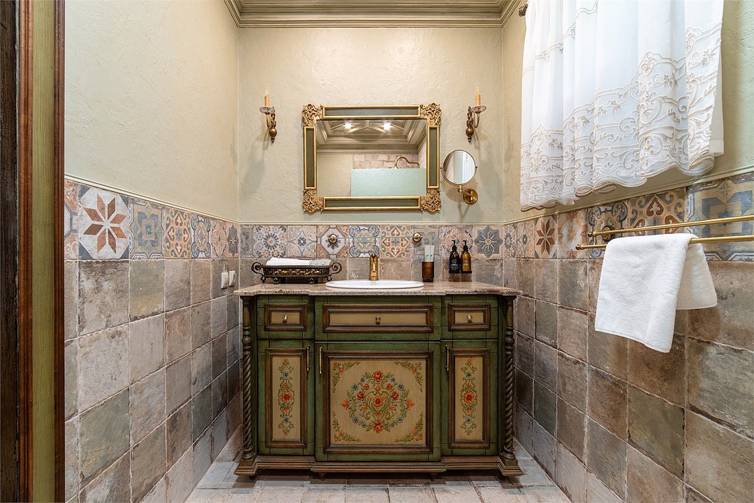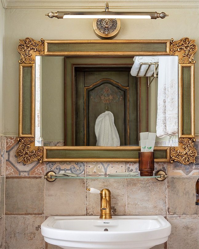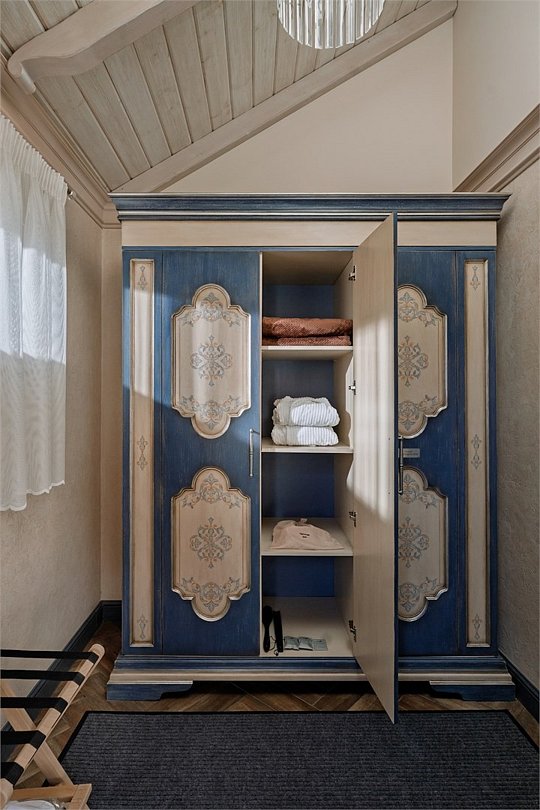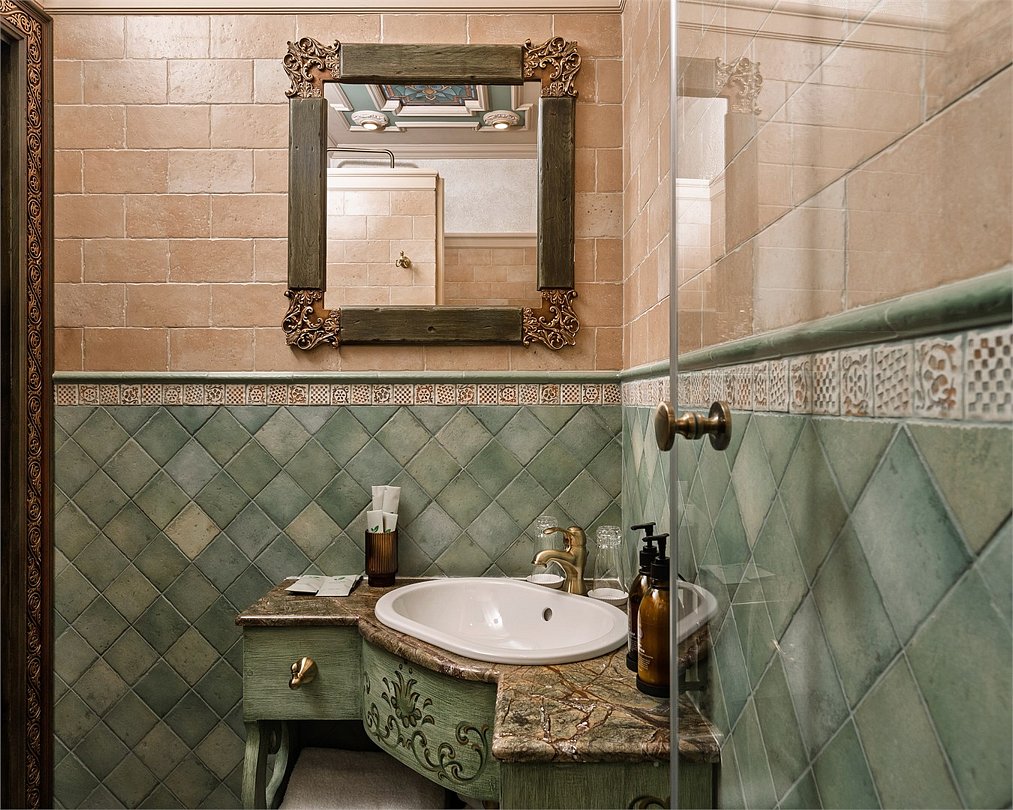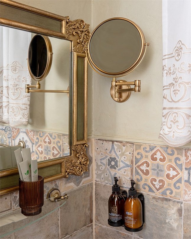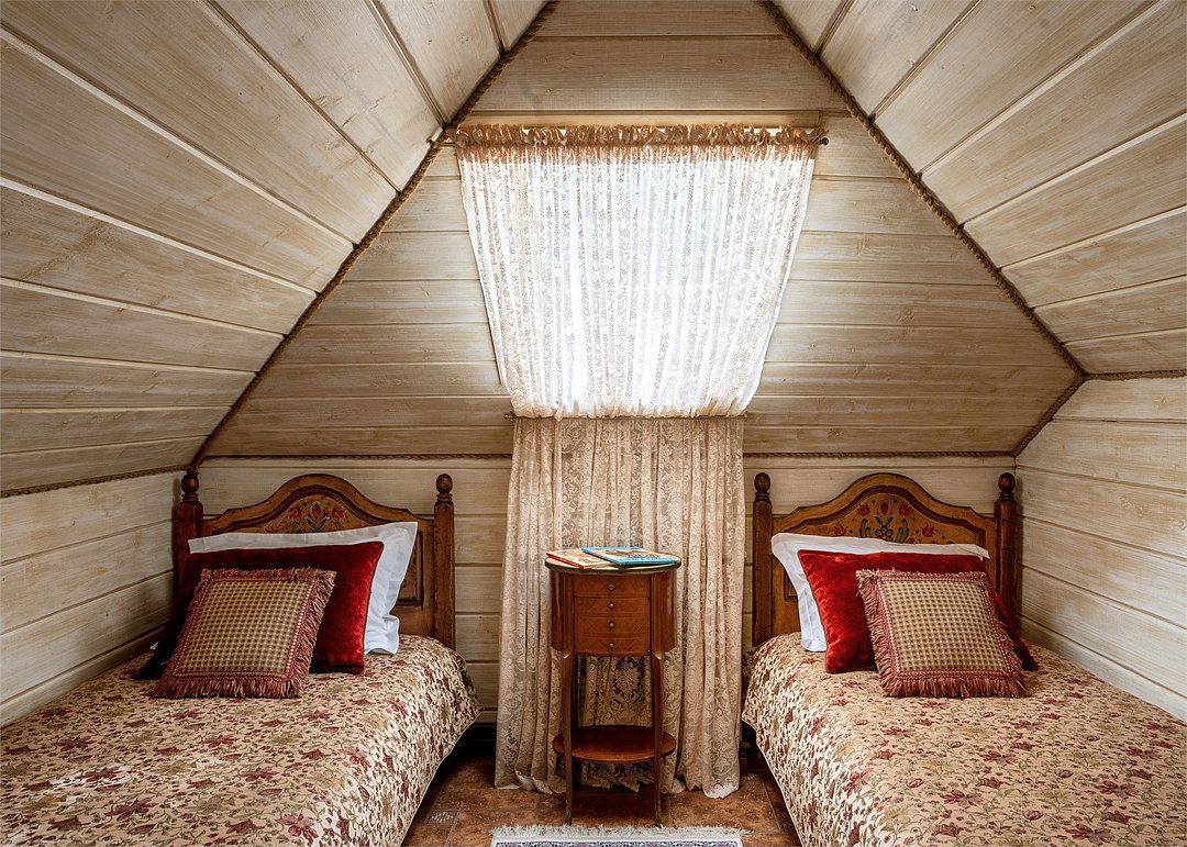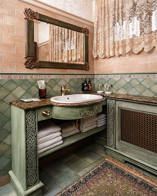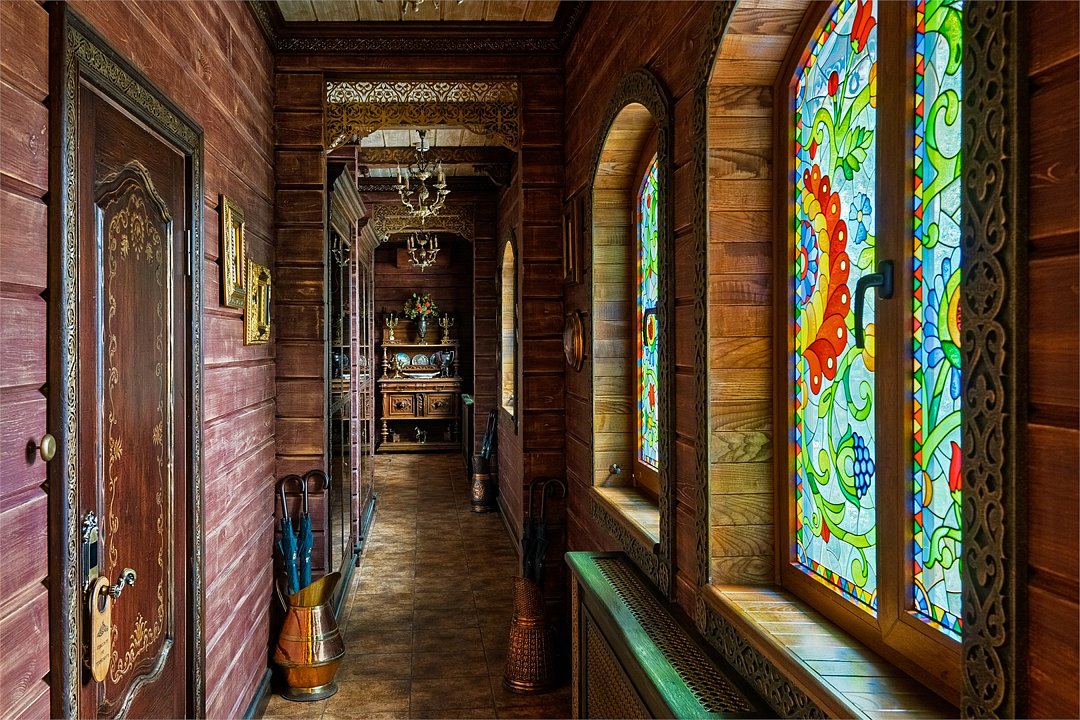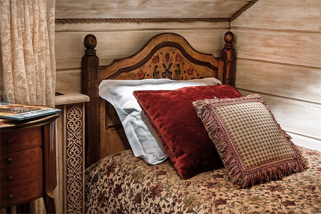 Номер категории Luxe «Царские хоромы» расположен на втором этаже деревянного особняка на территории парка. Дом в духе старинной усадьбы хранит атмосферу уюта и аристократического спокойствия. На первом этаже гостей встречает холл с лестницей из резного дерева, витражами и антикварной мебелью — камерное пространство, где приятно выпить чашку чая или насладиться тишиной. Интерьер номера выполнен в русском стиле: расписанные мастерами парка двери и шкафы, антикварный сервант с фарфором и хрусталём, мягкий свет ламп создают ощущение тепла и благородства. Спальня оформлена в тёплых оттенках бордо и охры, дополнена орнаментальным текстилем и декоративными подушками. В мансардной детской — две расписные кровати, наполненные атмосферой сказочного уюта. Ванная комната оформлена пастельной плиткой и зеркалом в фигурной раме — каждое утро здесь начинается красиво. ✨ «Царские хоромы» — это пространство, где каждая деталь наполнена душой и традицией, а пребывание превращается в маленькое путешествие во времени.Услуги и удобства