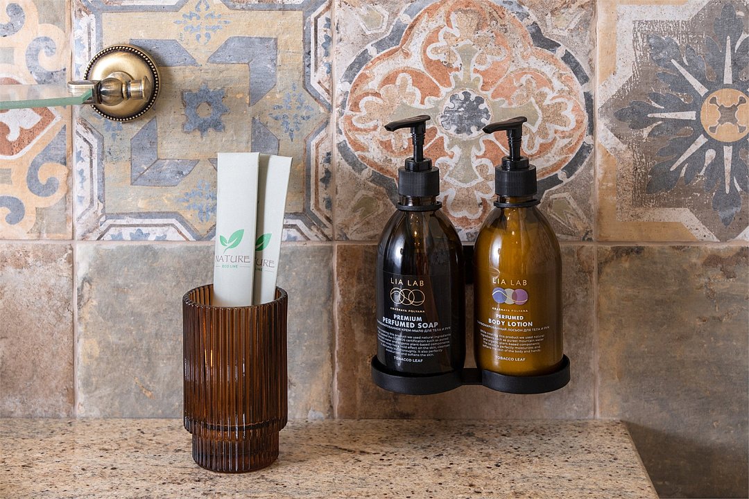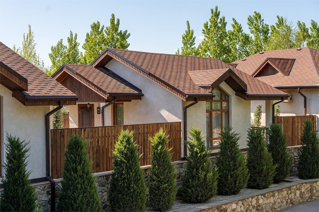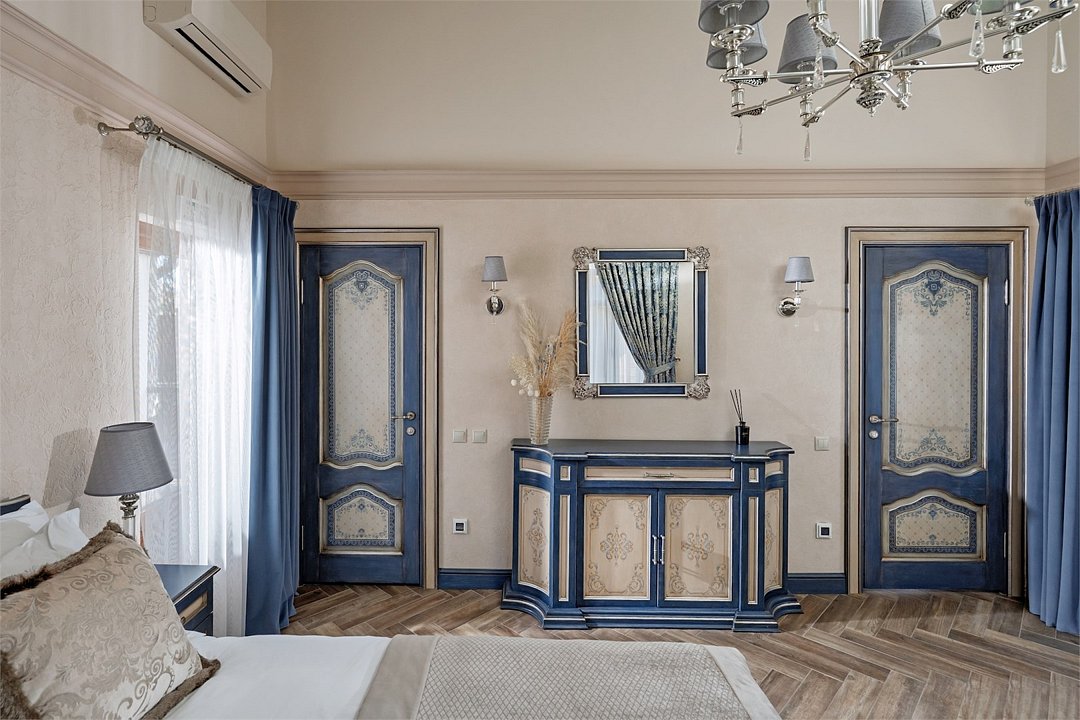 Каждый номер категории «Усадебный дом» Comfort — это отдельный домик, располагающий собственной террасой, образующей приватную зону отдыха на свежем воздухе. Светлые интерьеры в белых, бежевых и нежно-голубых тонах наполняют пространство лёгкостью и покоем. Особое очарование номерам придают эксклюзивная мебель и двери, выполненные мастерами парка вручную и расписанные в старинной флорентийской технике, а также делфтская плитка в ванных комнатах. Эта категория особенно любима молодожёнами и парами, ценящими элегантность, уют и гармонию с природой. Гостям предлагается большая двуспальная кровать с ортопедическим матрасом, рабочая зона, телевизор, капсульная кофемашина, мини-бар и все современные удобства для беззаботного отдыха.Услуги и удобства