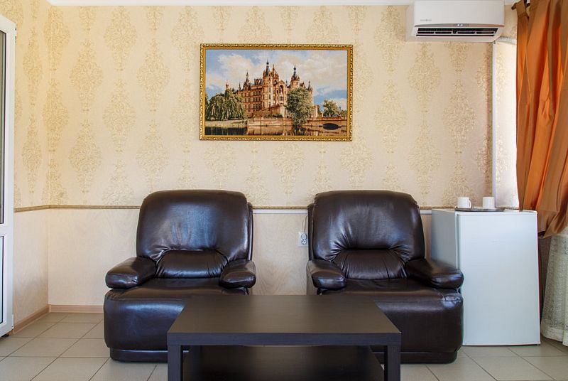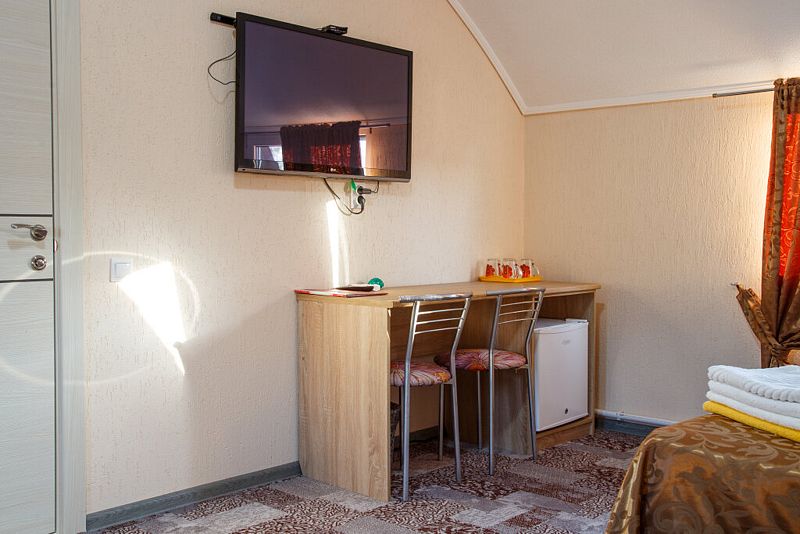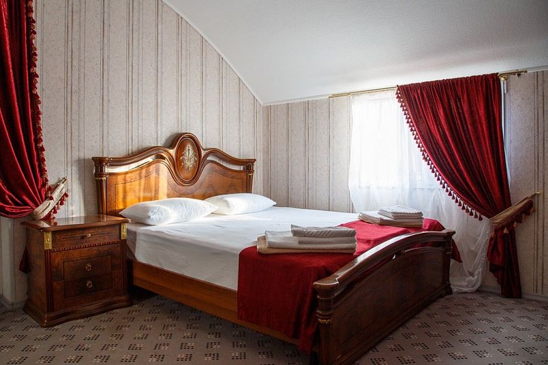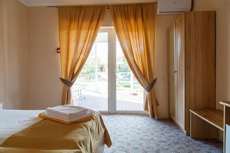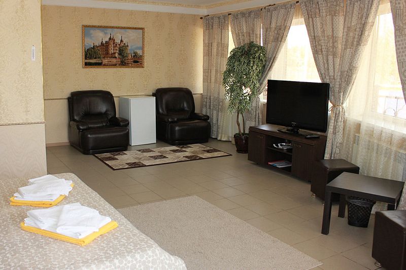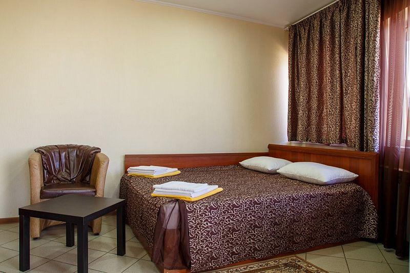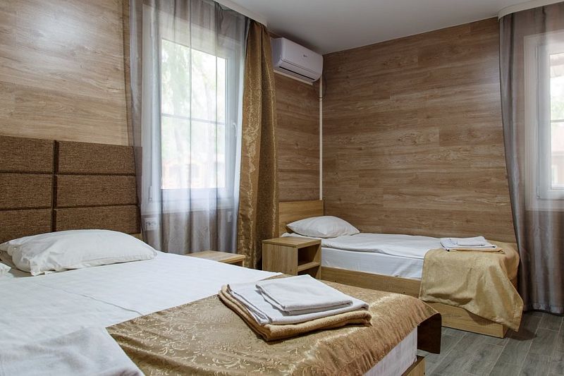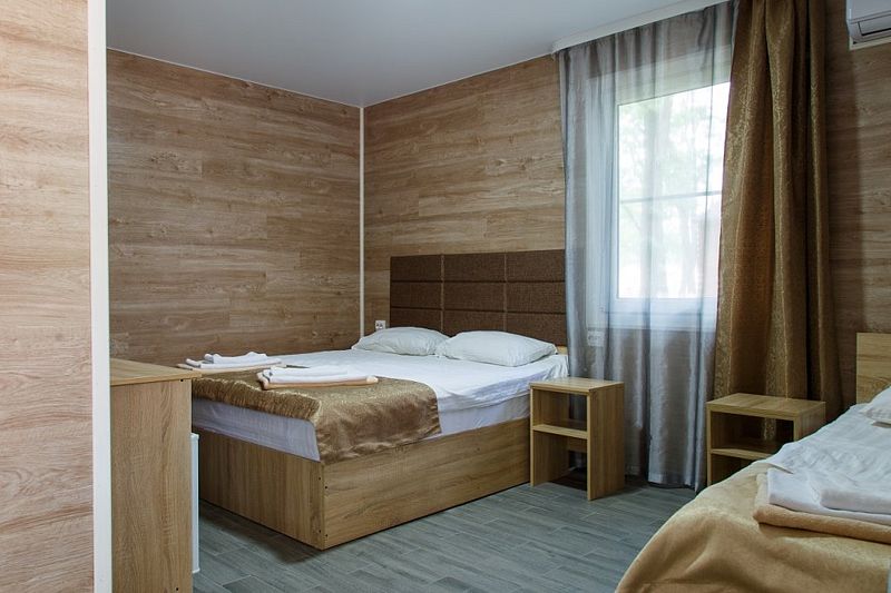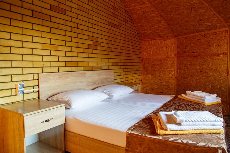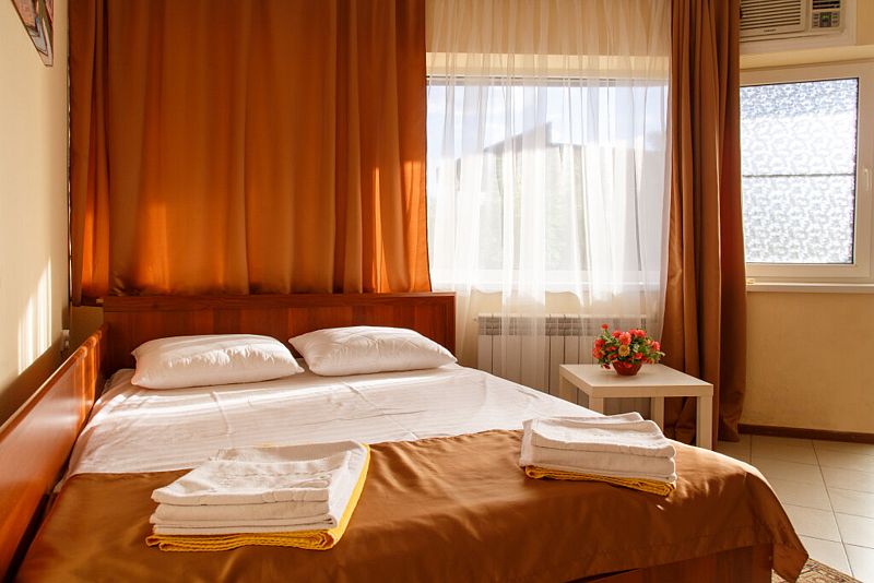 В базе отдыха есть четыре гостевых корпуса с различными категориями двухместных номеров («Эконом», «Стандарт», «Люкс»). В каждом номере есть возможность установки одного-двух дополнительных спальных мест. Дети до семи лет могут проживать бесплатно, если не занимают отдельные кровати.