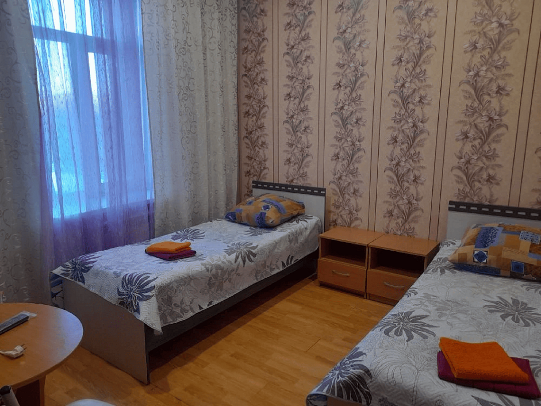 Номер с двумя отдельными кроватями и общими удобствами в гостинице «ЭкономЪ» — это функциональный и удобный вариант размещения для двух гостей, которые предпочитают спать раздельно. В номере расположены две односпальные кровати, прикроватные тумбочки, шкаф для одежды, зеркало и телевизор, предоставляются свежее постельное бельё и полотенца, работает Wi‑Fi. Санузел и душевые находятся на этаже и рассчитаны на несколько номеров, что позволяет сохранить доступную цену при базовом уровне комфорта.