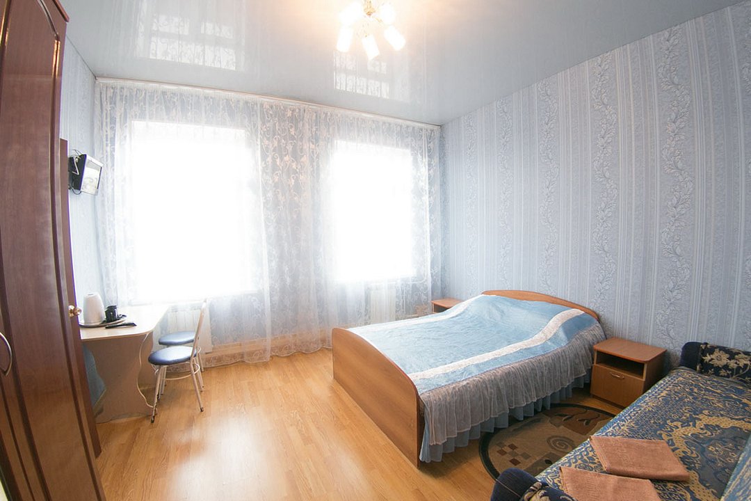 Гостиница — комфортный вариант размещения для туристов и командировочных, расположенный в удобном районе города рядом с основными транспортными развязками и деловыми объектами. Номера лаконично оформлены, есть всё необходимое для отдыха и работы: удобные кровати, Wi‑Fi, телевизор и рабочее место.