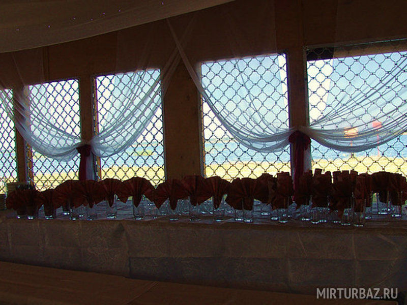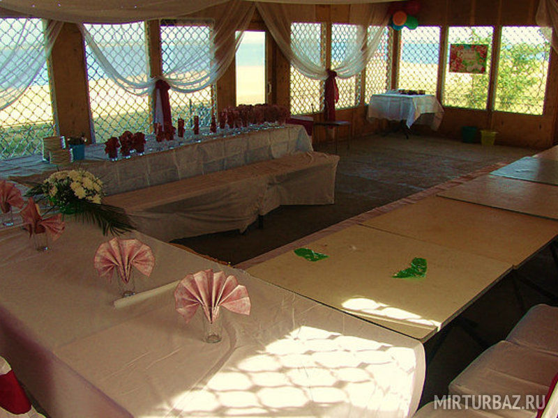 Для проведения торжеств есть две большие крытые беседки на 40 и на 60 человек соответственно. Беседки расположены на самом берегу озера, так чтобы праздник показался вам еще более красочным.