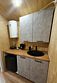 Большое панорамное окно с видом на лес, теплый пол, санузел, холодильник, эл. плита, эл. чайник, посуда, мангальная зона.
