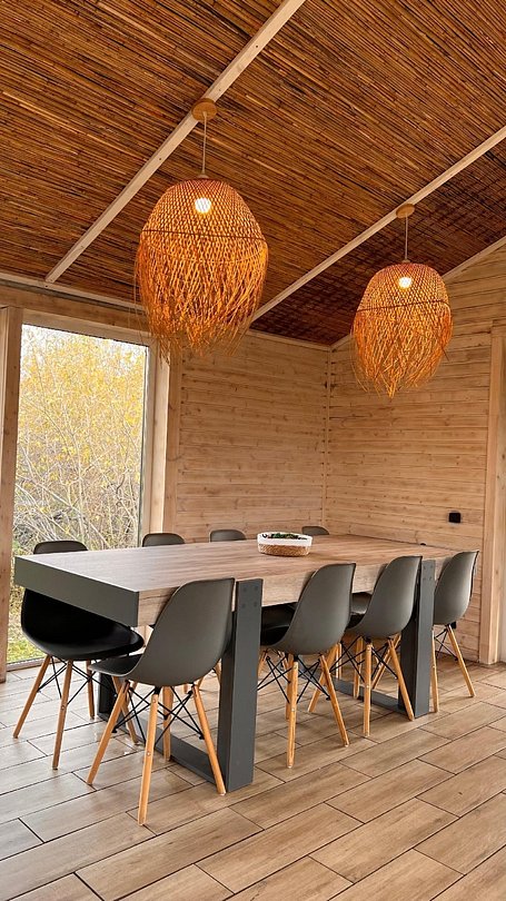 - Обеденная зона с панорамным видом;