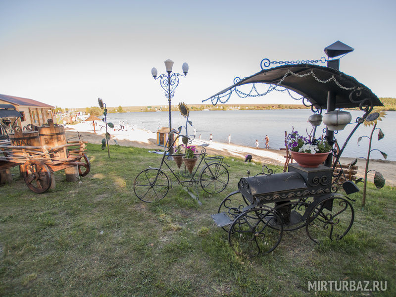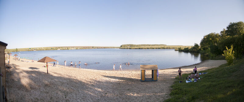 Живописный песчаный берег, оборудованный всем необходимым (раздевалки, душевые, зонтики). Для детей есть детская площадка и огороженная территория возле берега. За безопасностью постоянно следят спасатели.