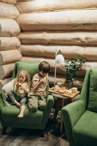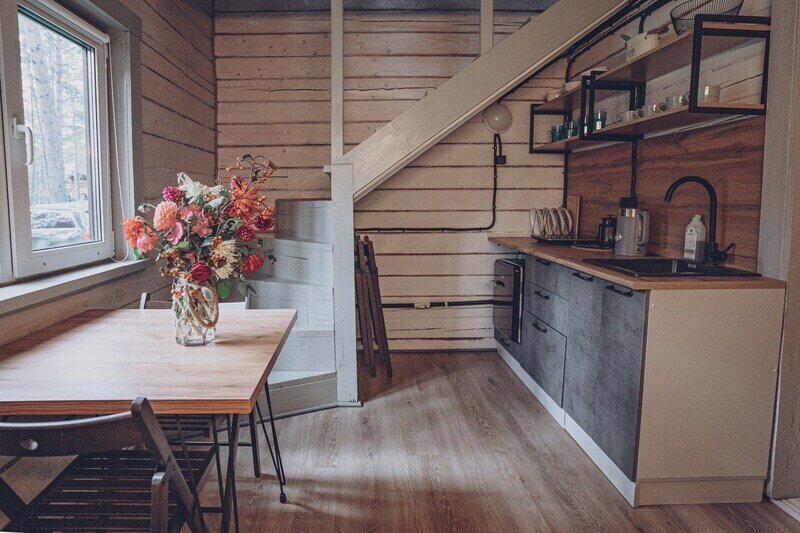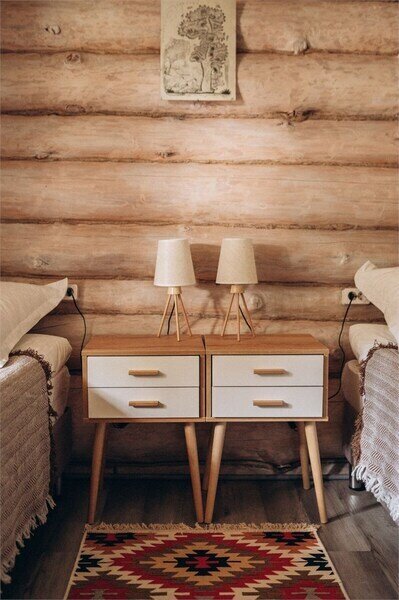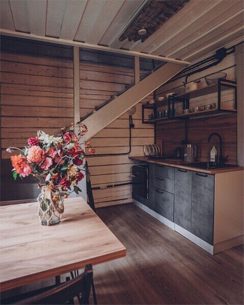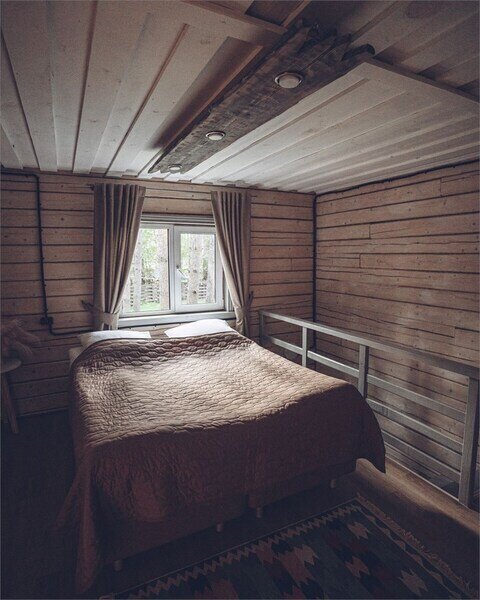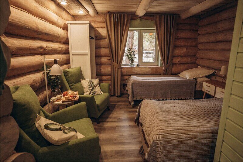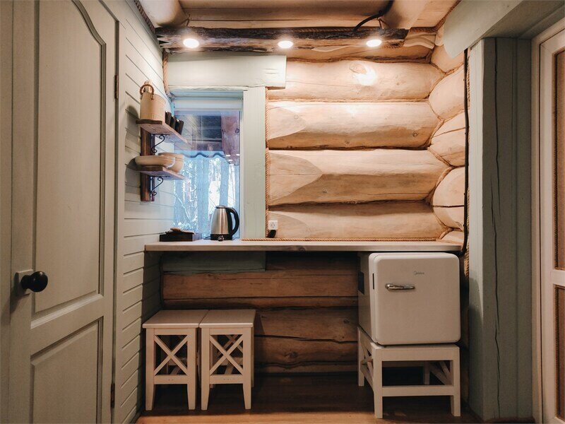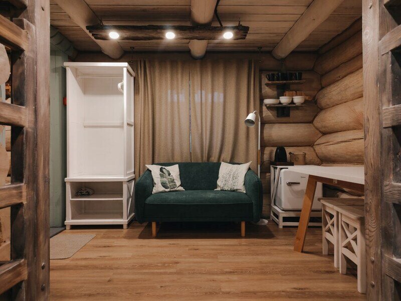 Терем включает в себя два номера категории люкс в сканди-стиле. Номера располагаются в деревянном коттедже с отдельными входами.