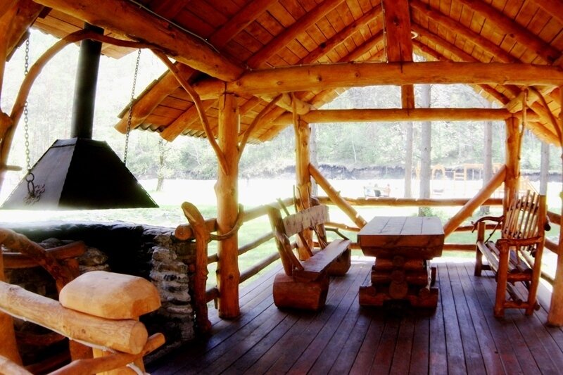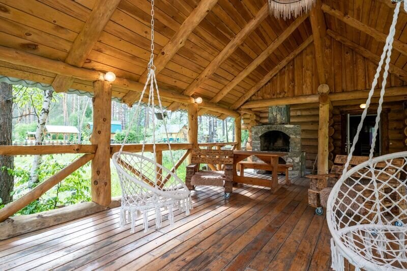 Большая веранда, выходящая на реку, с уличным камином позволит максимально комфортно отдохнуть на лоне природы.