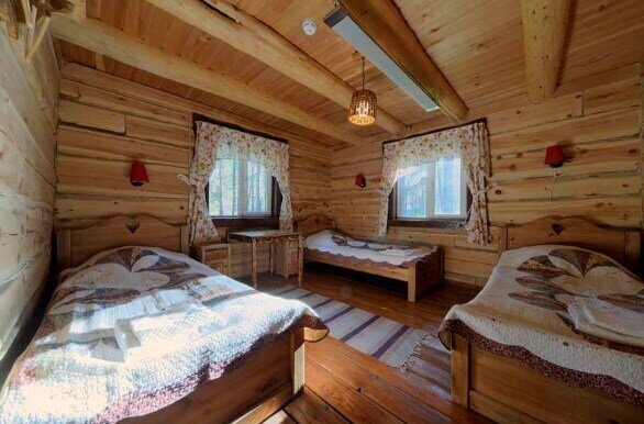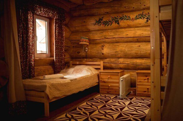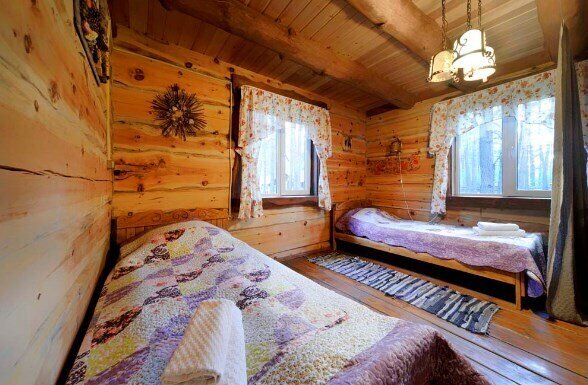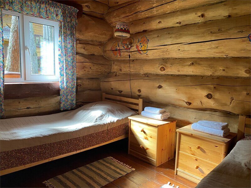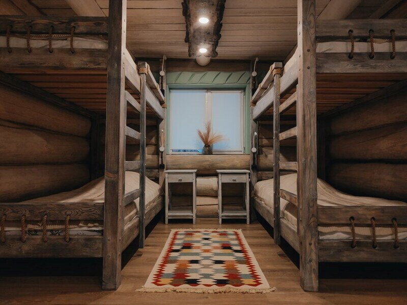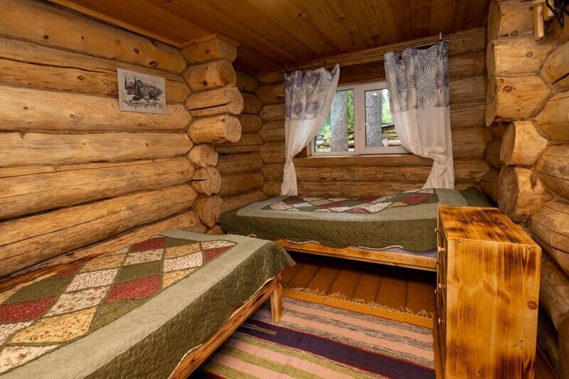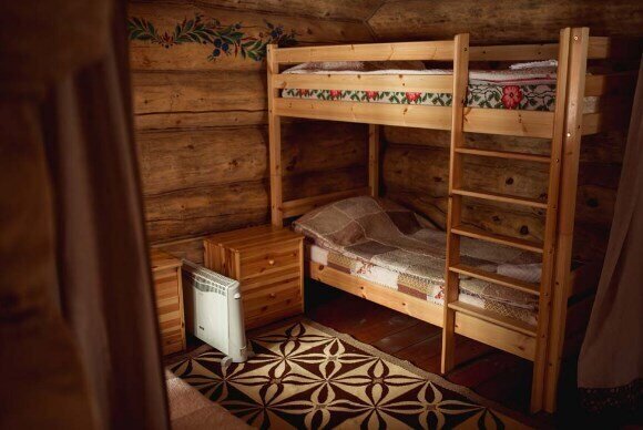 В каждой избушке одна односпальная и одна двухярусная кровать. При необходимости можно поставить одно дополнительное спальное место.