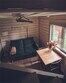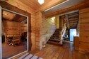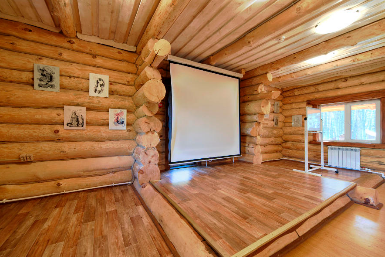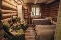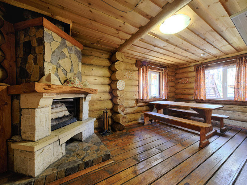 Просторная парилка, где можно испробовать разные способы парки вениками, уютная комната отдыха, где так душевно сидеть около разоженного камина большой компанией. Минимальный заказ — 2 часа.
