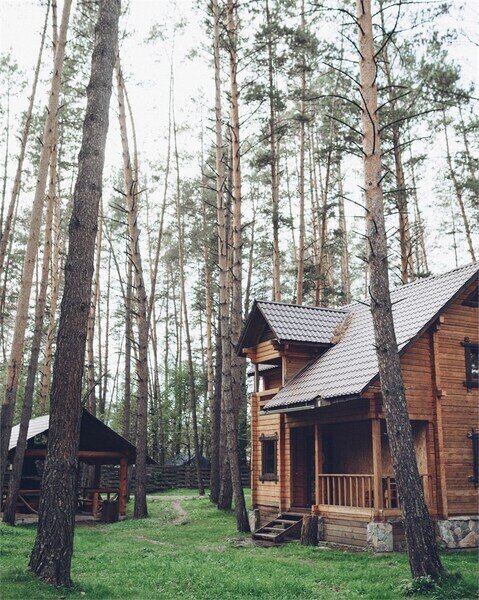 Территория отеля большая и утопает в соснах 🌲, река Сема по границе. Так же есть небольшой зоопарк с кроликами и курицами) Есть детская площадка с качелями