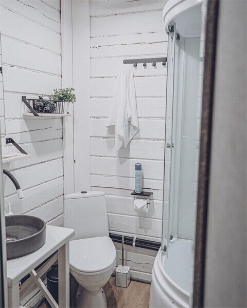 В домике тёплый пол, отопление, санузел с душевой и туалетом.