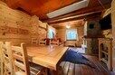 На первом этаже располагается просторная гостиная с камином и мягкой мебелью, где удобно смотреть по большой плазменной панели любимые фильмы, наслаждаясь потрескиванием дров в камине. В обеденной зоне можно собрать до десяти человек за дружеским столом.