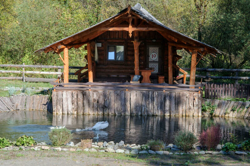 С «Домом Рыбака» все очень просто — это просторный дом, с личным выходом на озеро. Пожалуй это самый интересный домик в Берендеевке. На просторной веранде можно пить чай, наблюдая за рыбой в озере и слушая неторопливые разговоры уток и гусей.