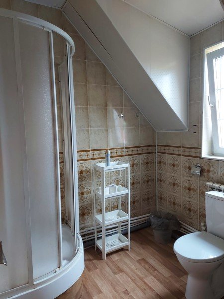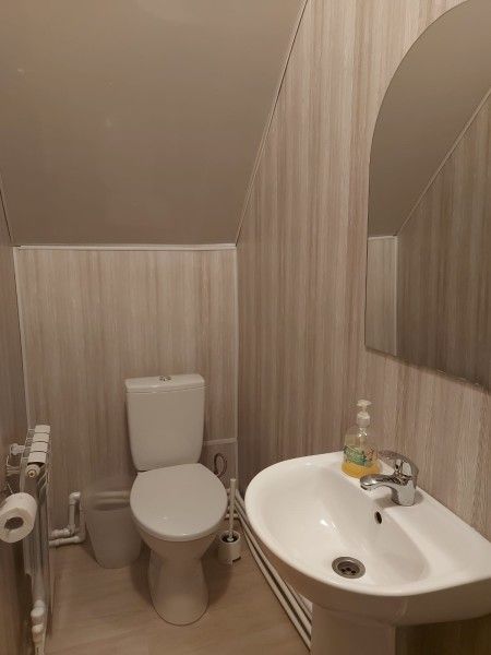 Собственный санузел (душевая, туалет, раковина) на этаже напротив номера.