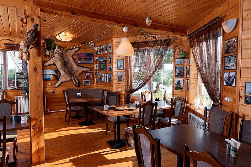 Главный общественный центр базы — гостиная, которая за годы работы превратилась в настоящий музей, хранящий историю и атмосферу этого места. Стены украшают фотографии гостей с трофеями, а полки заполнены сувенирами, привезенными из разных уголков страны.