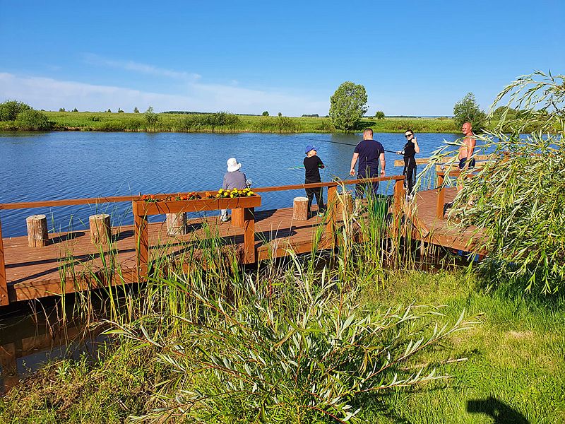 Для ценителей спокойного, неторопливого отдыха на природе на нашей базе есть уютный деревянный пирс. Этот идеальный уголок для медитативной поплавочной рыбалки или просто релаксации у воды, сочетая в себе комфорт и живописные виды окружающих ландшафтов.