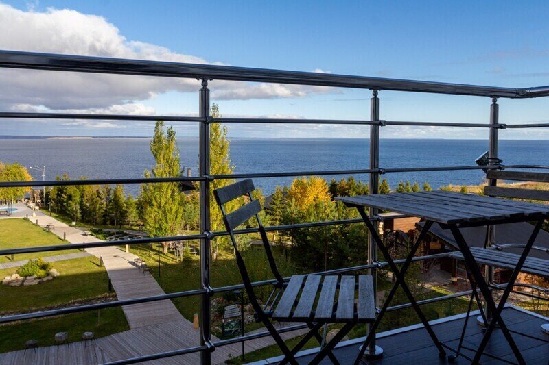 Дома с панорамными окнами и видом на "Камское море" и террасой.