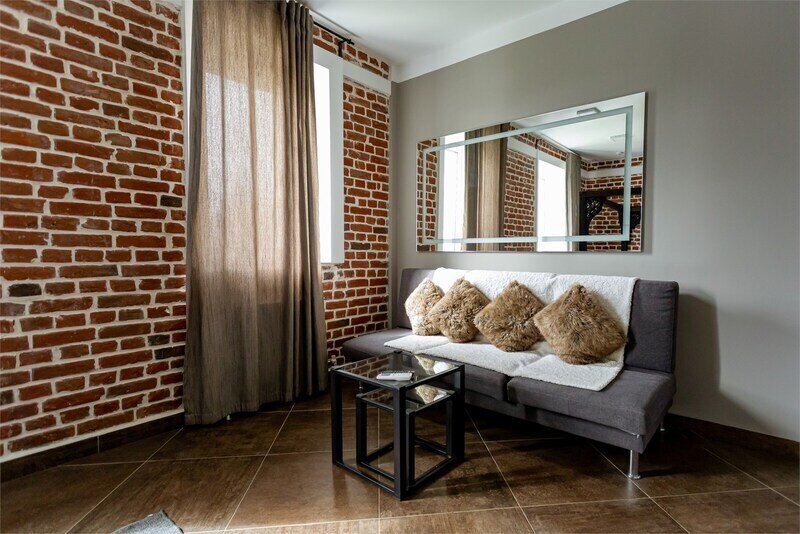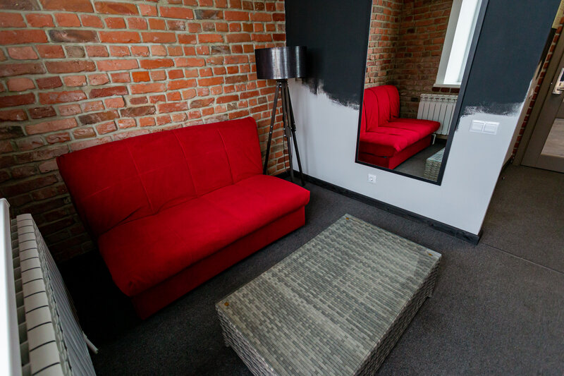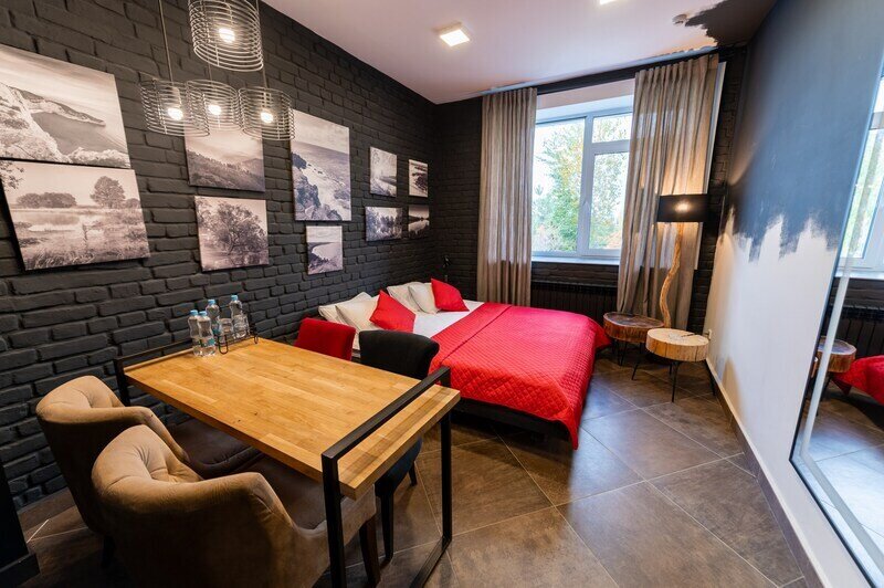 С двуспальной кроватью и раскладным диванам. Возможность размещения: 2 основных места и 2 дополнительных .