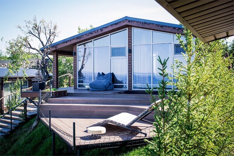 Дом общей площадью 35 м2, с панорамными окнами и видом на "Камское море" и террасой.