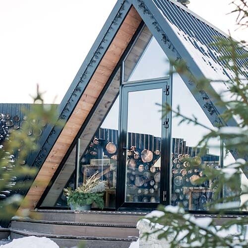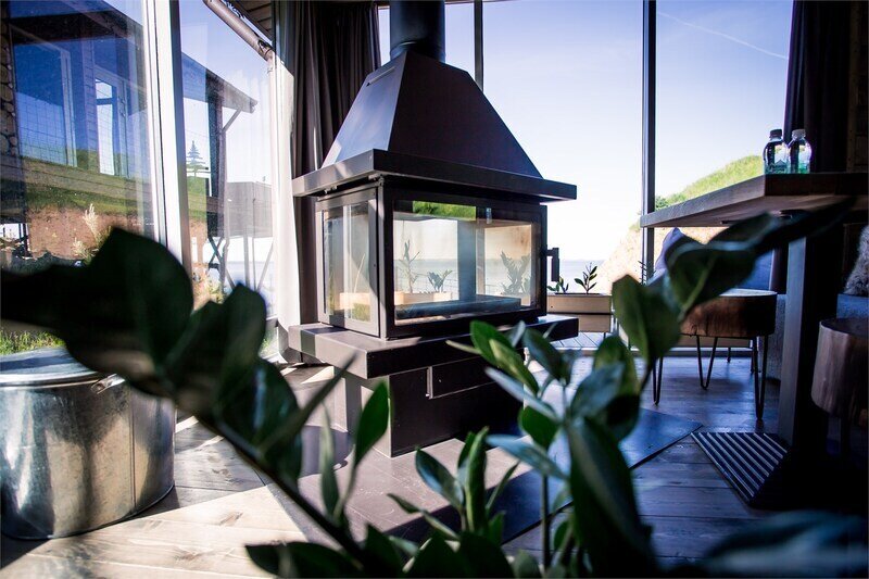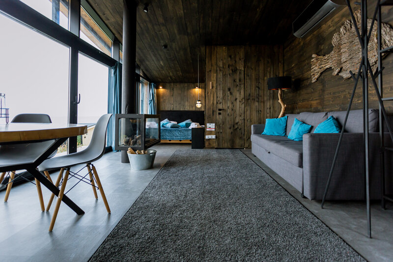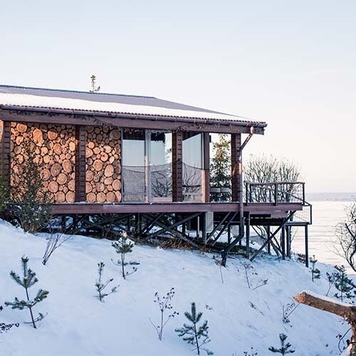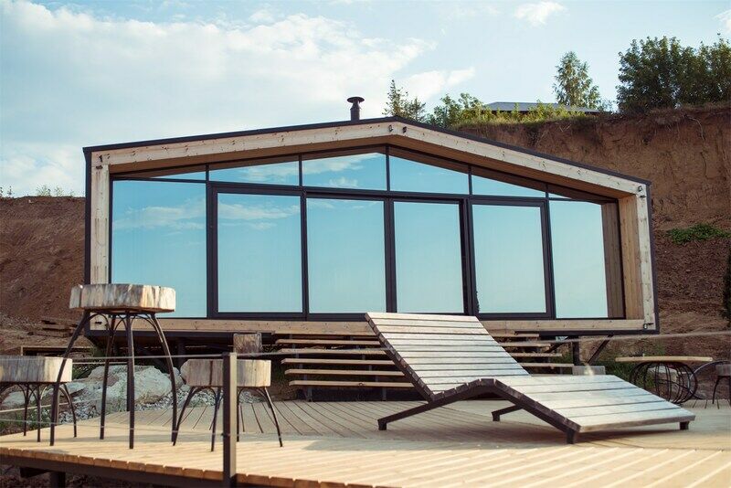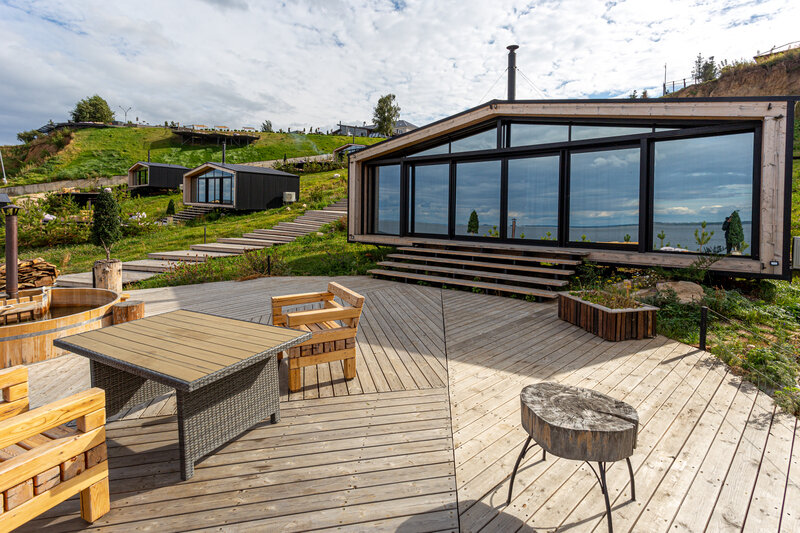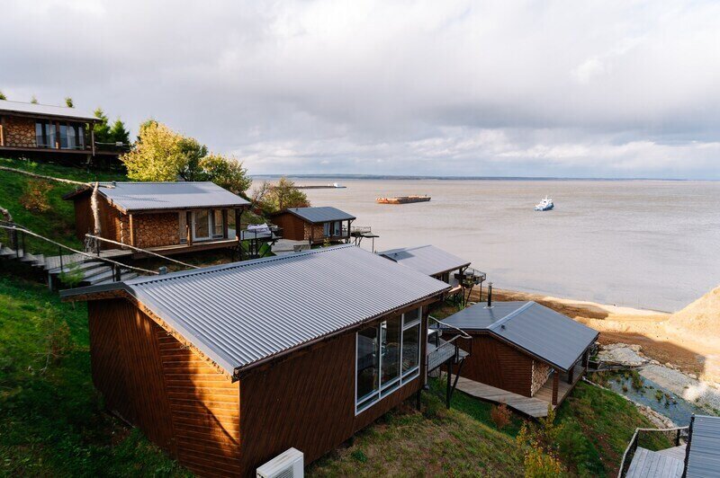 Дом общей площадью 35 м2, с панорамными окнами и видом на "Камское море", камином и террасой.