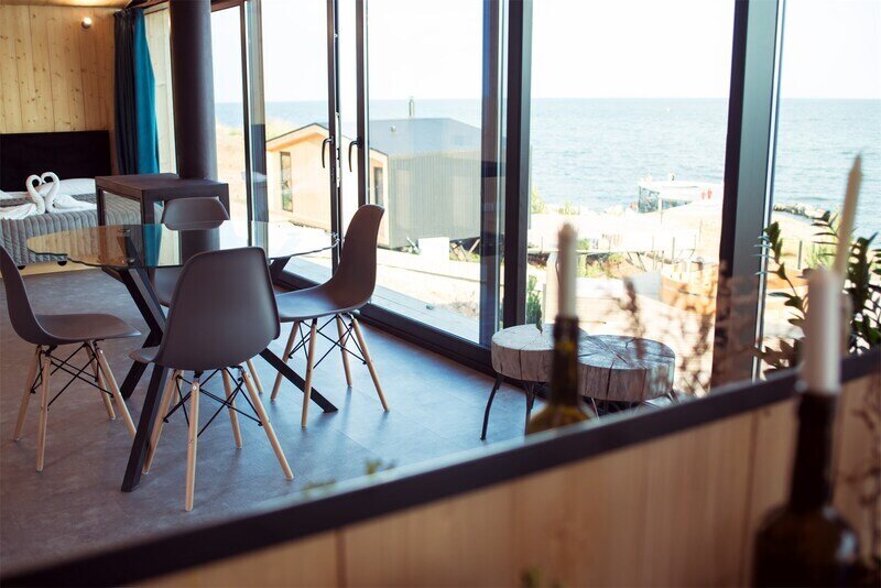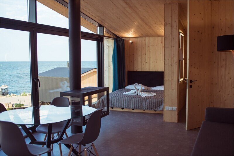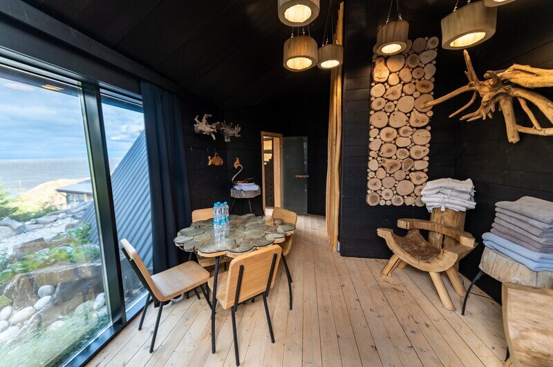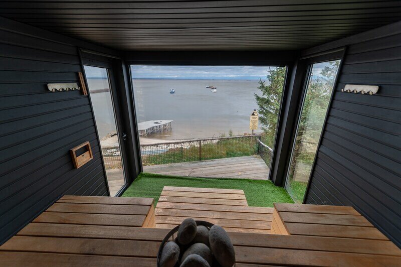 Дом общей с панорамными окнами и видом на камское море, с террасой и японской баней за дополнительную плату. С двуспальной кроватью и раскладным диванам.