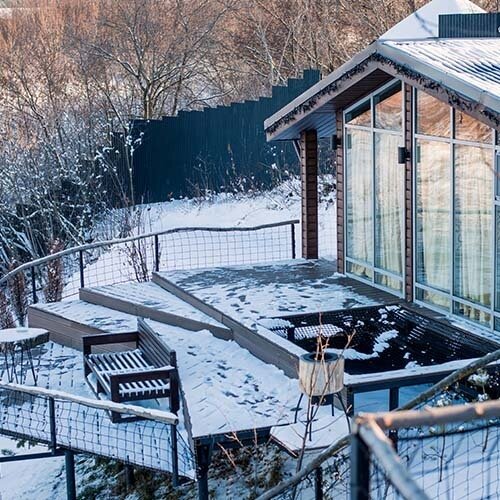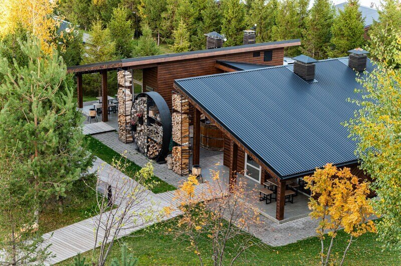 Дом с панорамными окнами и видом на "Камское море", с террасой и японской баней Фурако (за дополнительную плату).