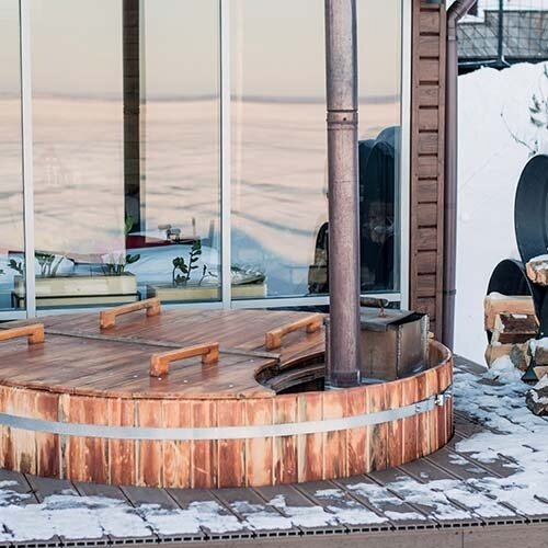 Японская баня Фурако – это деревянная купель в виде бочки, которая находится на улице, с подогреваемой водой до 40°C. Растопка единоразовая, использование до 2-х часов. Требуется предварительное бронирование минимум за 6 часов.
