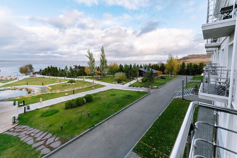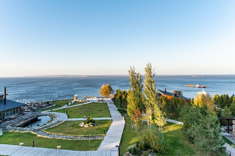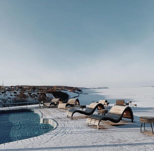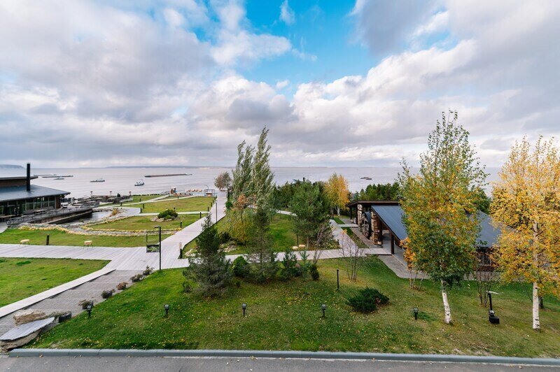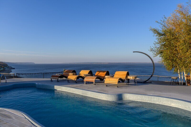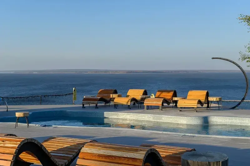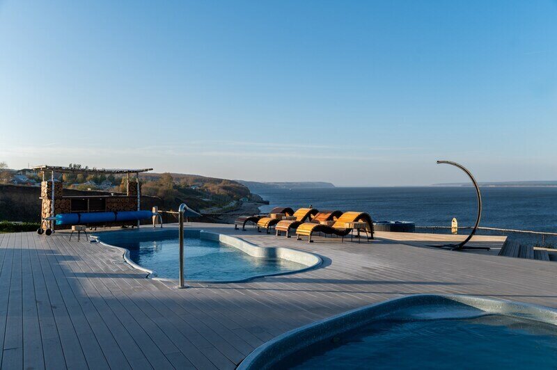 Территория- для детей есть игровая комната, горка, детский бассейн,мини -зоопарк. Отовсюду открываются чудесные виды. Но для взрослых бассейн очень маленький, вода мутная, лежаков критично мало, в грельню набивается куча народа, мне не вариант вообще. Инфинити бассейн крошечный и предназначен, видимо, только для трех вилл. Непонятно, что там делать летом, пляжа для купания в камском море нет,пирса тоже.