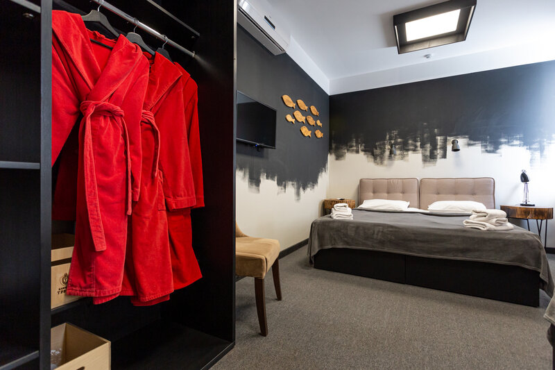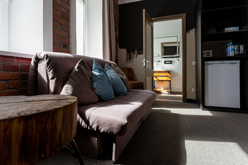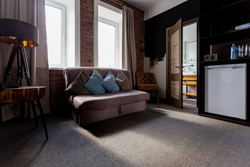Однокомнатные двухместные номера с одной двуспальной кроватью и раскладным диваном. Возможность размещения: 2 основных места и 2 дополнительных. Детские кроватки, стульчики для кормления предоставляются по запросу гостя. Модификация номеров может отличаться!