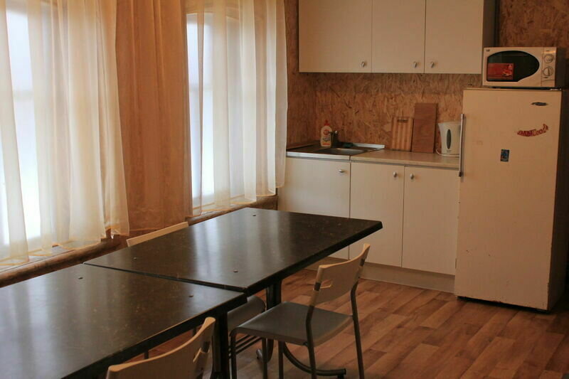 Кухня оборудована холодильником, чайником, микроволновой печью.