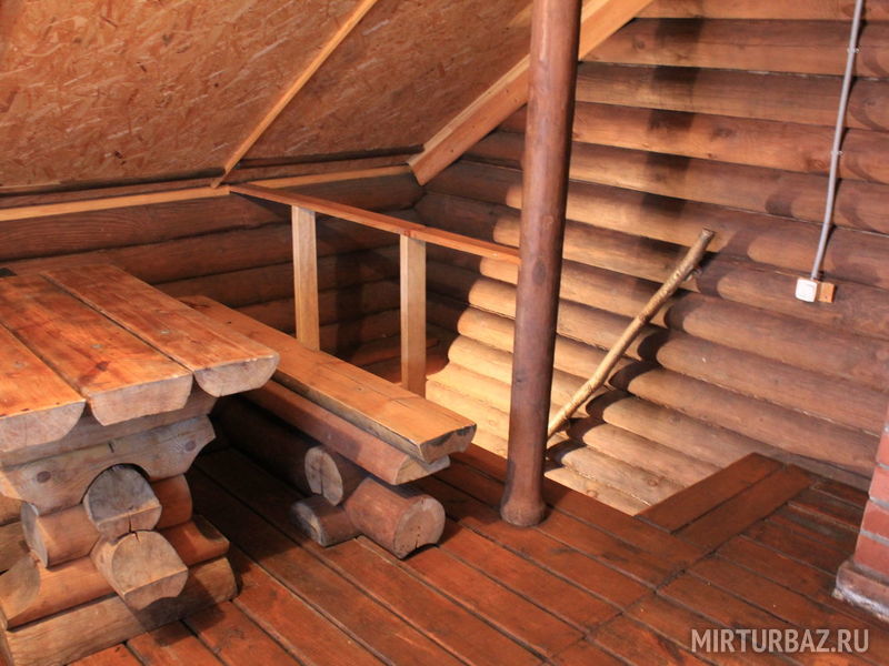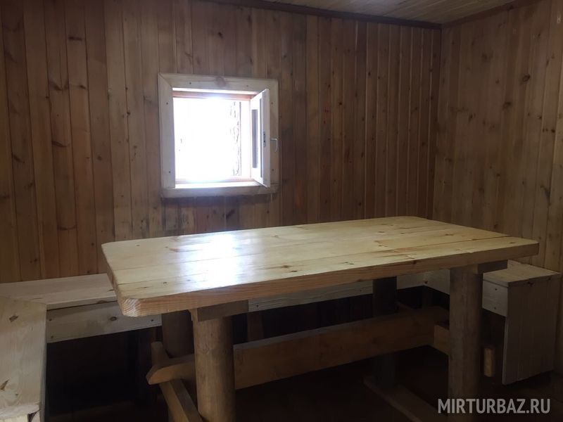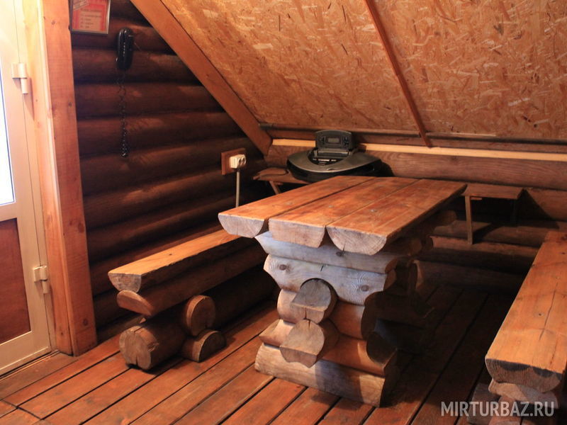 2 этаж: комната отдыха (стол, скамейки, кровать, чайник, музыкальный центр).
