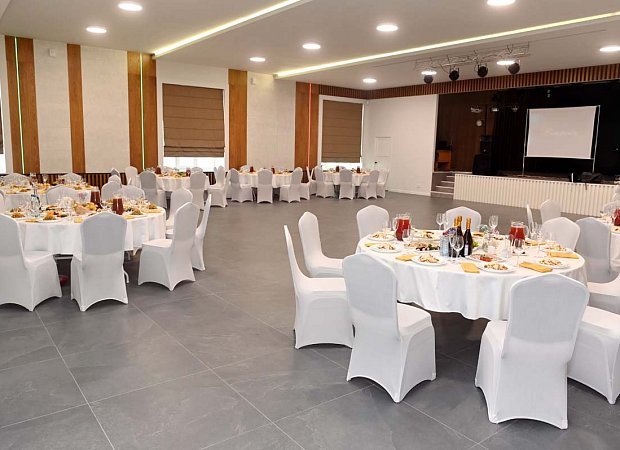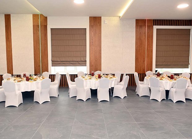 Банкетный зал — многофункциональное пространство, способное воплотить в жизнь самые смелые идеи и создать незабываемую атмосферу для свадеб, юбилеев, дней рождения, корпоративных вечеринок, конференций и прочих событий. Зал рассчитан на 120 посадочных мест, оборудован удобной парковкой и собственной просторной кухней, готовой порадовать гостей разнообразным меню.