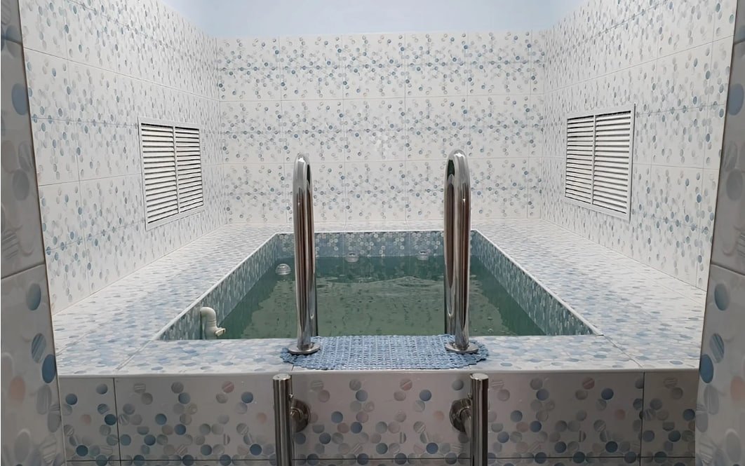 В зону сауны входит сама сауна, небольшой бассейн, уютная зона со столом, просторный открытый балкон.