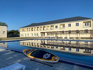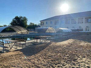 Тип бассейна: открытый бассейнРядом с бассейном: шезлонги, зонтикиРазмеры: 23 x 14 мПлощадь: 322 м²Глубина (диапазон): от 40 до 170 смПериод работы: от 10:00 до 20:00, летний сезонПросторный бассейн на открытом воздух с лежаками зонтиками и навесом. Бассейн с постепенным углублением, с одной стороны детская зона от 40 см и достигает 170 глубины в другой стороне.