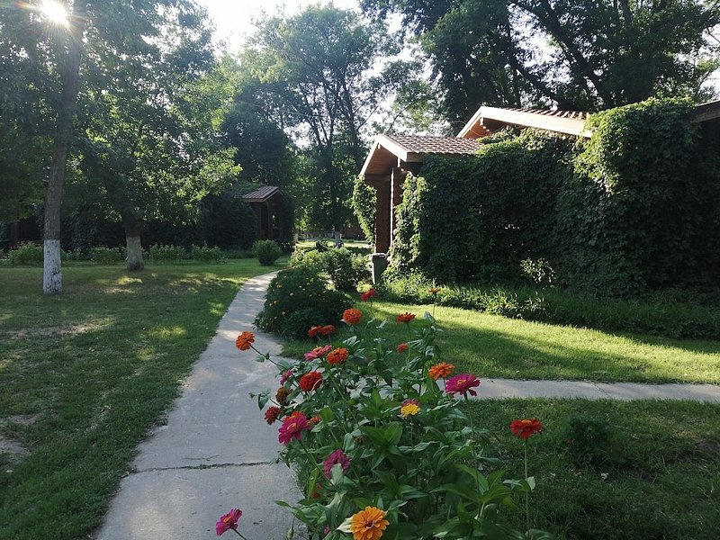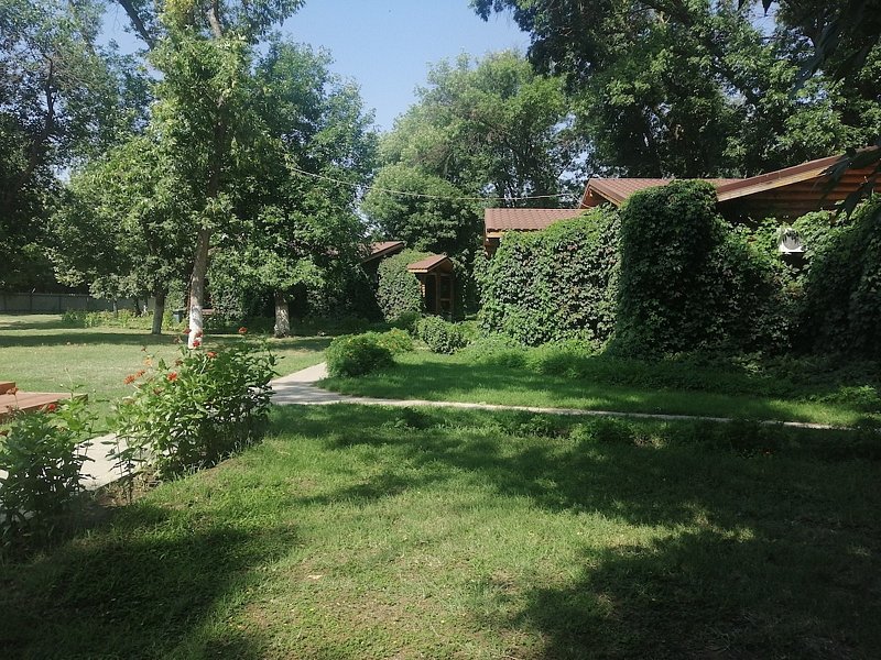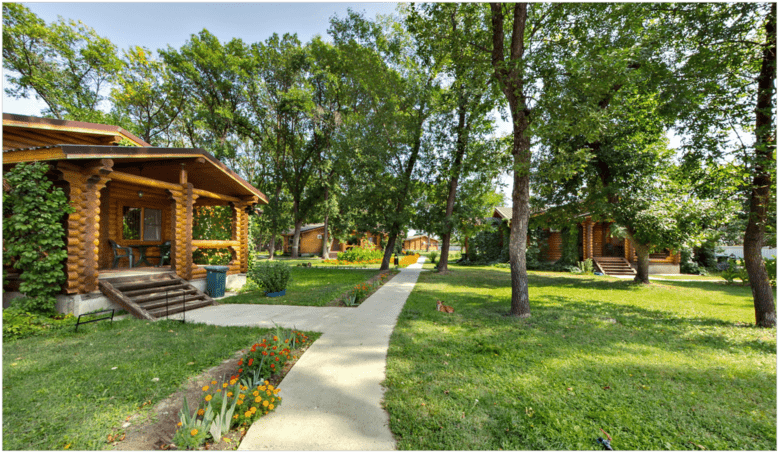 Турбаза построена прямо в лесу. Поэтому ее территория очень зеленая и живописная. Вся растительность для безопасности и удобства отдыхающих регулярно обрабатывается от паразитов и насекомых.
