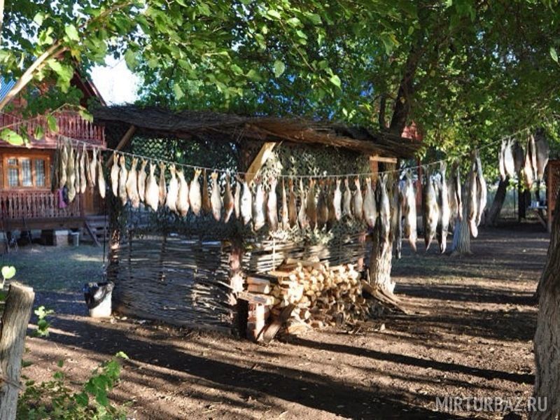 На территории имеется подсобное хозяйство: всегда в наличие свежая рыба и мясо, молоко и молочные продукты собственного изготовления.