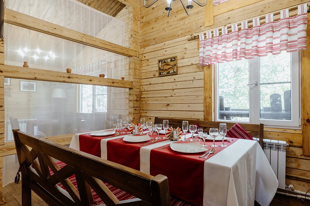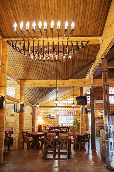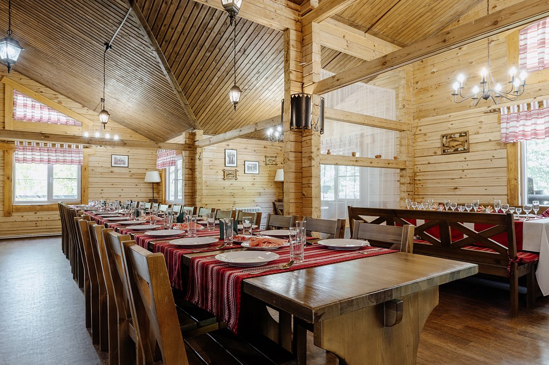 Ресторан подойдет для проведения мероприятий с проживанием до 65 человек и таких празднеств, как день рождения или свадьба с приглашением до 80 человек.