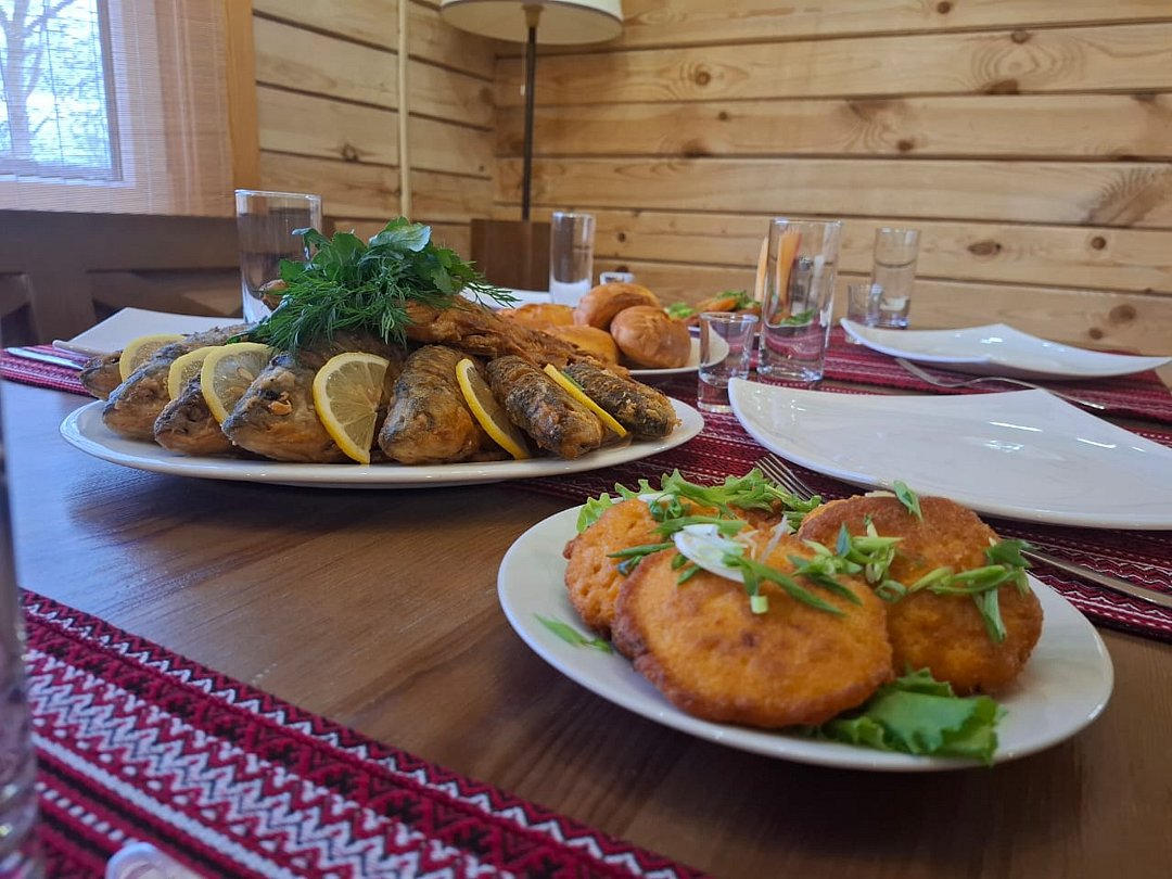 Ресторан на базе предлагает разнообразные блюда, приготовленные по изысканным рецептам, с возможностью заказа банкетного меню или ланч-боксов для пикника на природе.