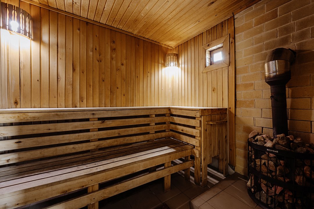 Посещение бани по предварительной записи. Услуги «банщика» (парение с вениками 3-захода, медовый пилинг, массаж) — по запросу.