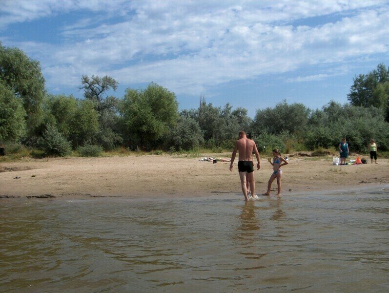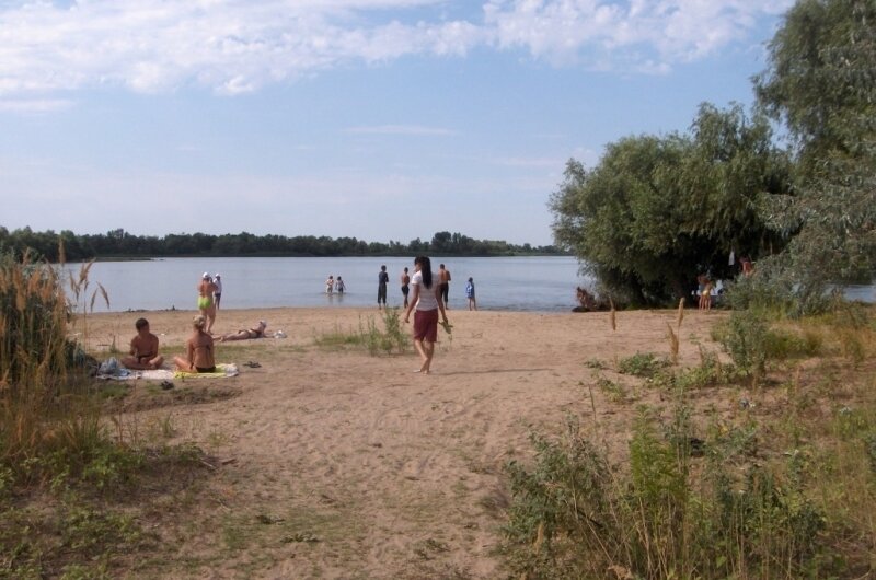 Песчаный пляж в пешей доступности от базы для отдыхающих.