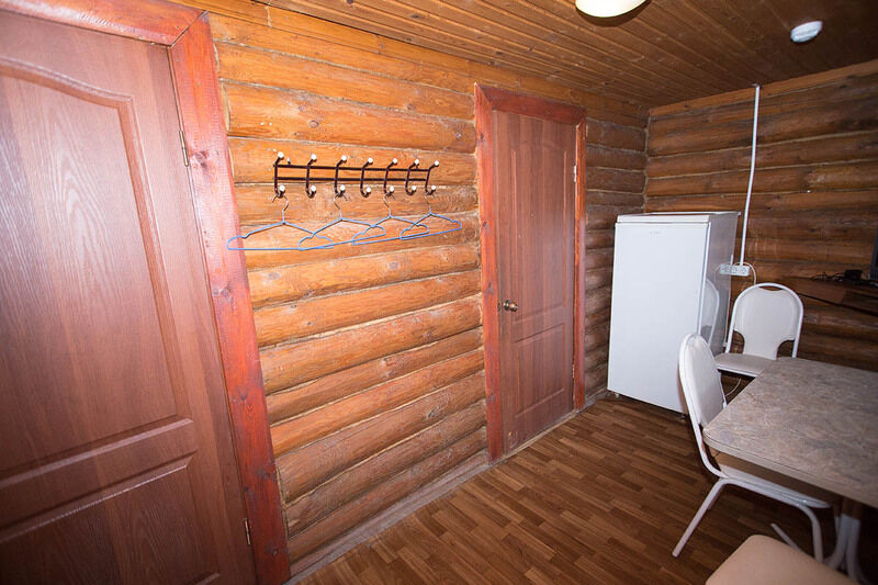 Утепленный жилой дом-сруб, с центральным отоплением, горячей и холодной водой, туалетом, душевой кабиной и кондиционерами в каждой комнате, с большой открытой верандой, предназначен для круглогодичного проживания гостей.